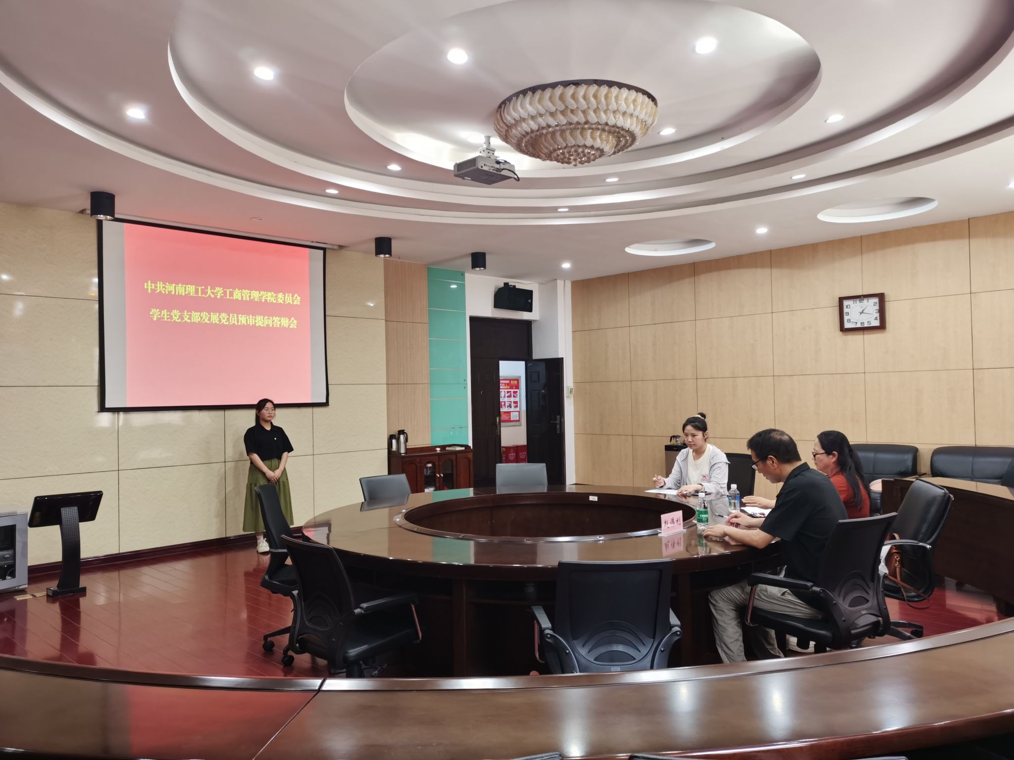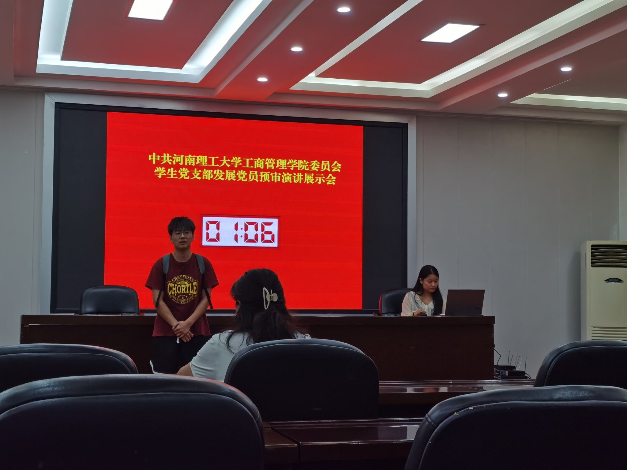 为加强我院党员队伍建设,提高党员发展质量,我院在6月3日中午1点15分于经管楼1105、1106会议室举行了一场别开生面的发展党员预审演讲展示提问答辩会。党委副书记赵伟利、学工办主任孙玉平、宣传委员赵萍负责答辩环节,支部书记崔冬霞、组织委员李佳音负责演讲环节。工商学院本科生第三、第四党支部发展对象参加本次演讲答辩会议。