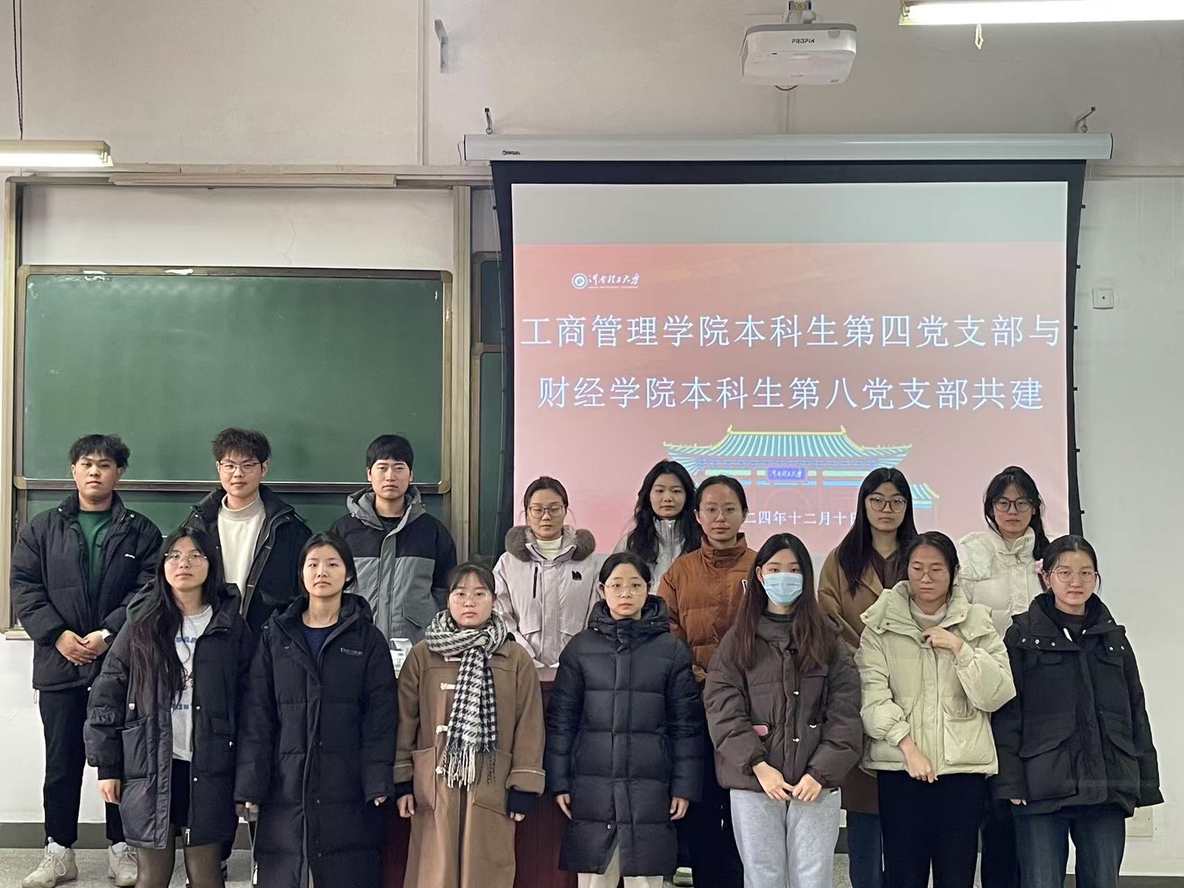 为深入学习贯彻党的二十大精神,加强基层党组织建设,促进学院间党支部的交流与合作,12月10日下午,工商学院第四党支部与财经学院第八党支部在经管楼1204共同开展了一场意义深远的支部共建活动。活动聚焦党建引领、专业交流与社会服务,旨在整合双方资源优势,创新党建工作模式,提升党员素质与服务能力,为学院发展和社会进步贡献力量。两支部共计十余人参加此次活动。