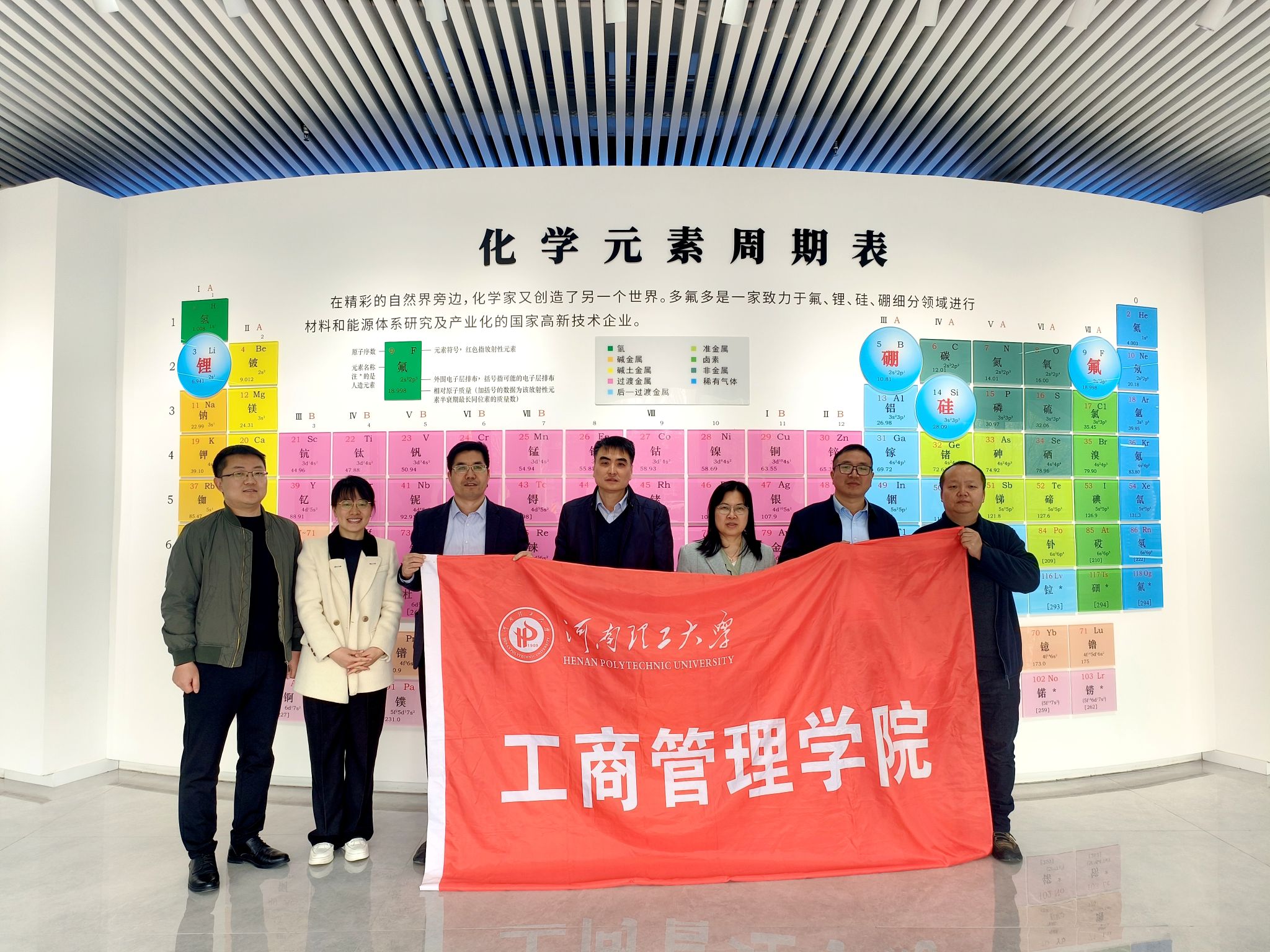 为深化校企合作与专业建设,强化党建工作交流,促进党建与业务深度融合,4月3日,学院党委书记郭学鹏、院长傅端香带队赴多氟多新材料股份有限公司开展党建暨校企合作交流活动。副书记赵伟利、副院长刘战豫及系主任、教师代表一起参加交流。