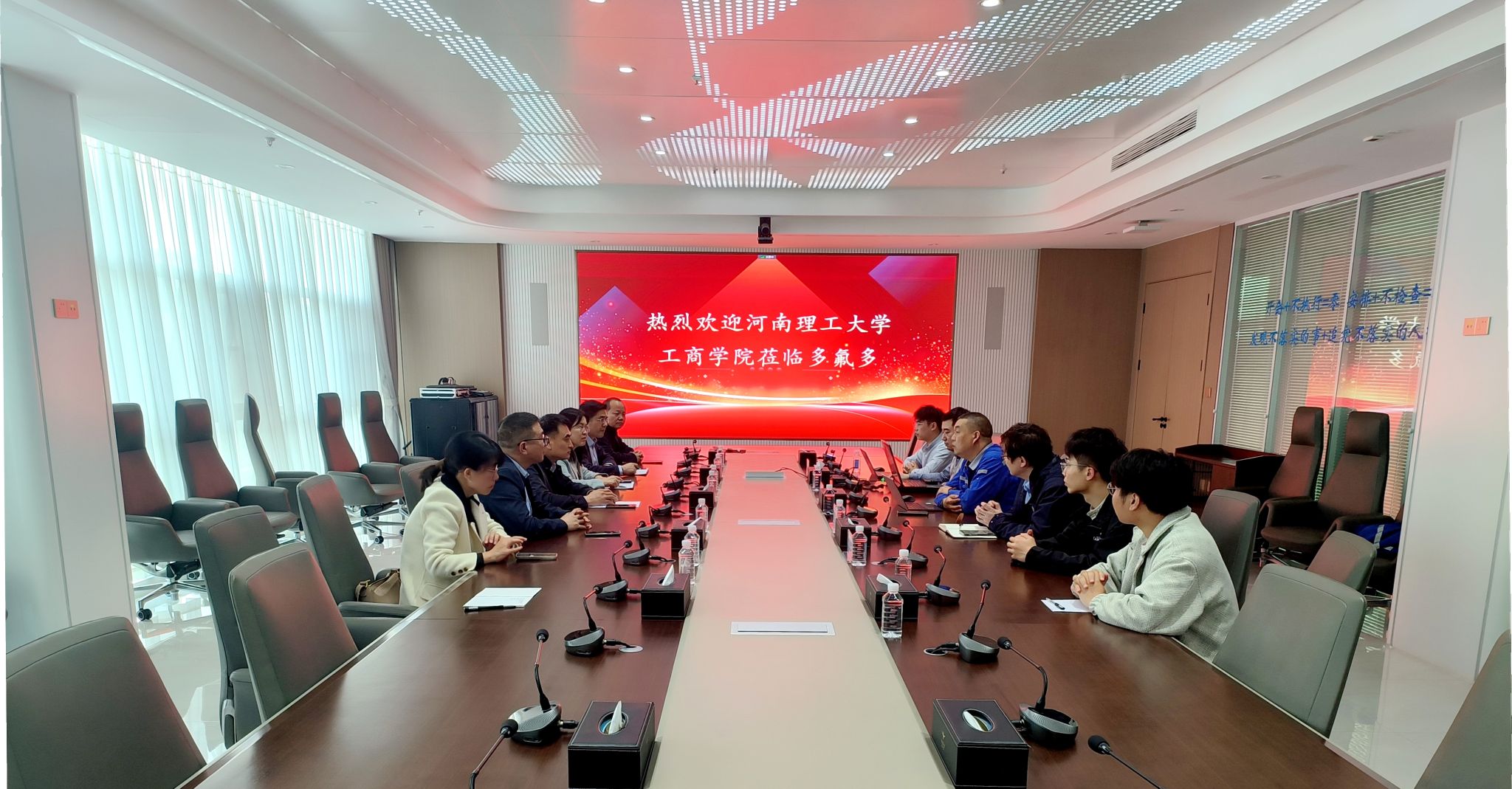 多氟多新材料股份有限公司智能信息部部长、党支部书记刘海庆以及部门负责人带领郭学鹏等一行,参观了多氟多氟基新材料创新中心展厅。随后,双方进行了座谈交流。座谈会上,刘海庆致欢迎词,他介绍了公司的企业理念、发展战略、业务开拓、服务应用等情况,并就公司下一步与学院的合作方向提出初步意见,期待与学院在数智化治理能力等方面开展合作。郭学鹏对多氟多公司给予学院发展的支持表示感谢,并简要介绍了学院党建工作、人才培养及毕业生就业等相关情况,期待双方以支部合作共建为契机,在校企资源共建共享、产教融合协同育人方面开展深入合作。傅端香介绍了学院的基本情况、专业建设及科学研究及社会服务等情况,并就企业信息化建设进行了深入沟通。其他与会人员围绕专业人才培养、企业理念优化、课程案例建设等合作事宜进行了深入交流。