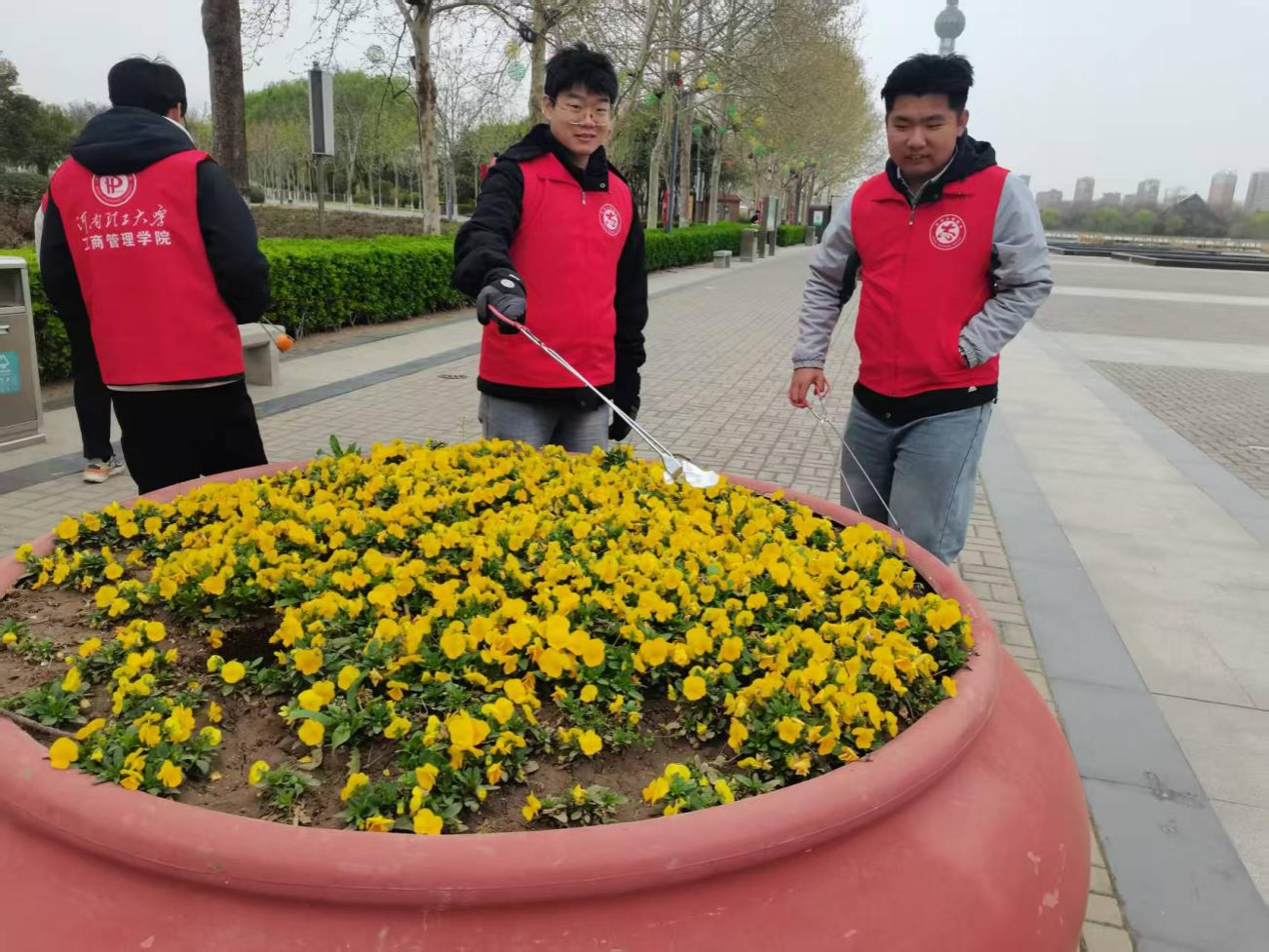 3月27日,工商管理学院本科第三党支部组织党员走进龙源湖公园,开展"学雷锋·文明实践我行动"主题志愿服务活动,以实际行动传承和弘扬雷锋精神。春日的龙源湖公园景色宜人,但散落在步道、草坪、湖岸的烟头、塑料袋等杂物却影响了公园的整体环境。志愿者们穿上红色志愿服,手拿清洁工具,分成小组对公园各个区域展开全面清理。他们认真搜寻每一处卫生死角,俯身捡起草丛中的饮料瓶,用夹子仔细清理砖缝里的烟头,细心打捞湖岸石缝和水面漂浮的垃圾。"这些烟头藏在隐蔽处,需要我们更加耐心。"一位预备党员一边搜寻长椅角落和树根下的垃圾一边说道,"但想到能为市民创造更好的游园环境,再细致也值得。"