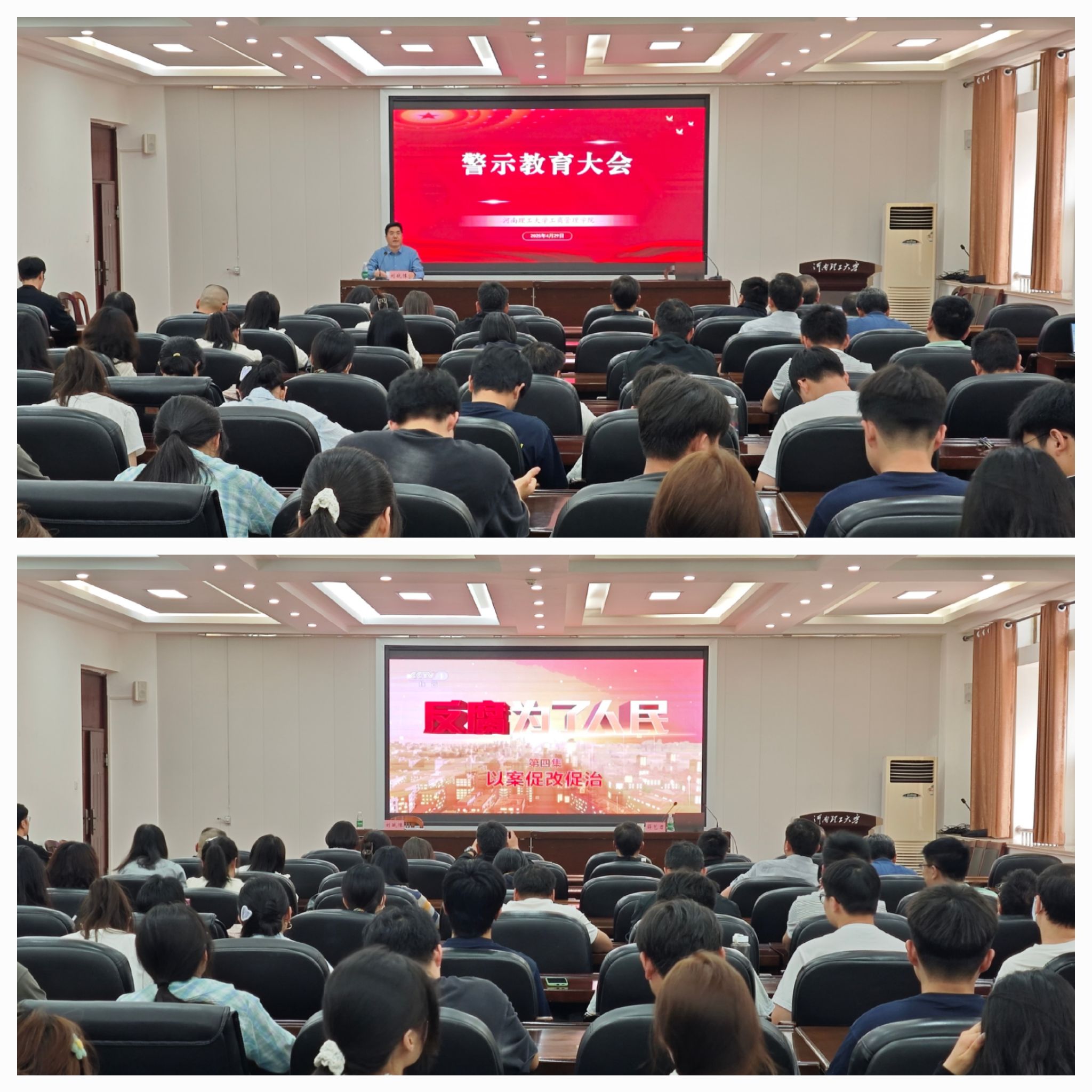 为推动中央八项规定精神落地落实,强化警示教育实效,4月29 日,我院在1105会议室召开警示教育大会。副院长刘战豫主持会议,全体教师参会。