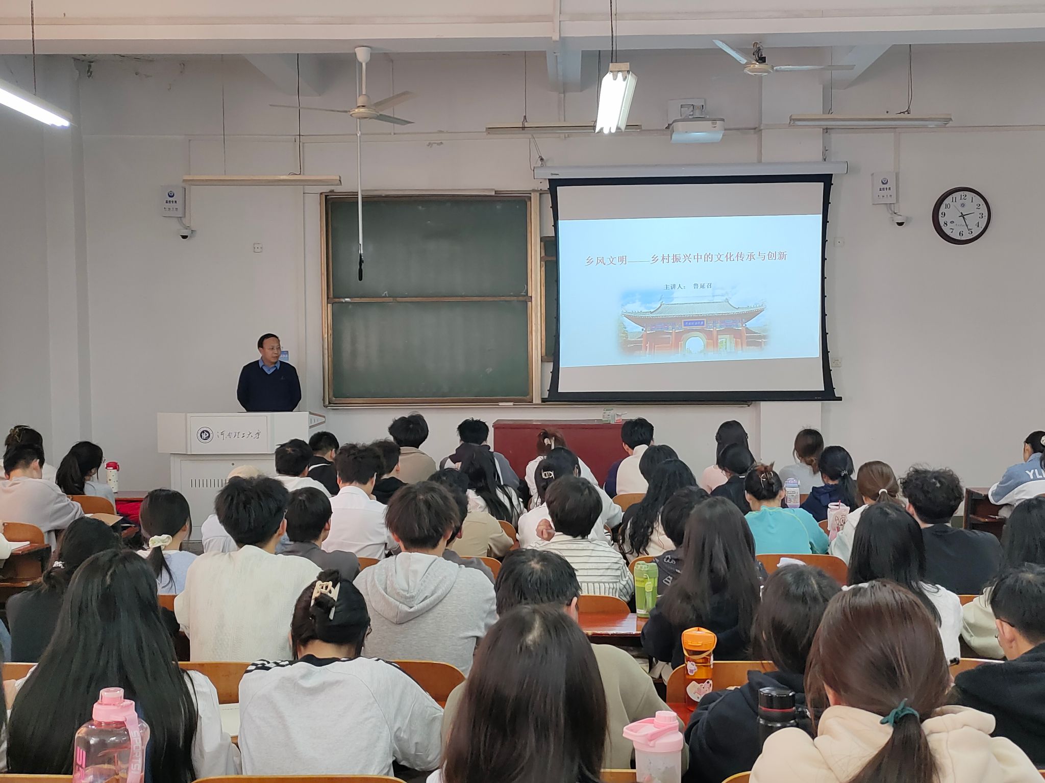 鲁延召以“乡风文明——乡村振兴中的文化传承与创新”为主题,从红旗渠精神、延安精神等红色资源切入,阐释乡村振兴战略的历史逻辑与现实意义号召青年学子投身乡村振兴,将青春融入国家发展战略。
