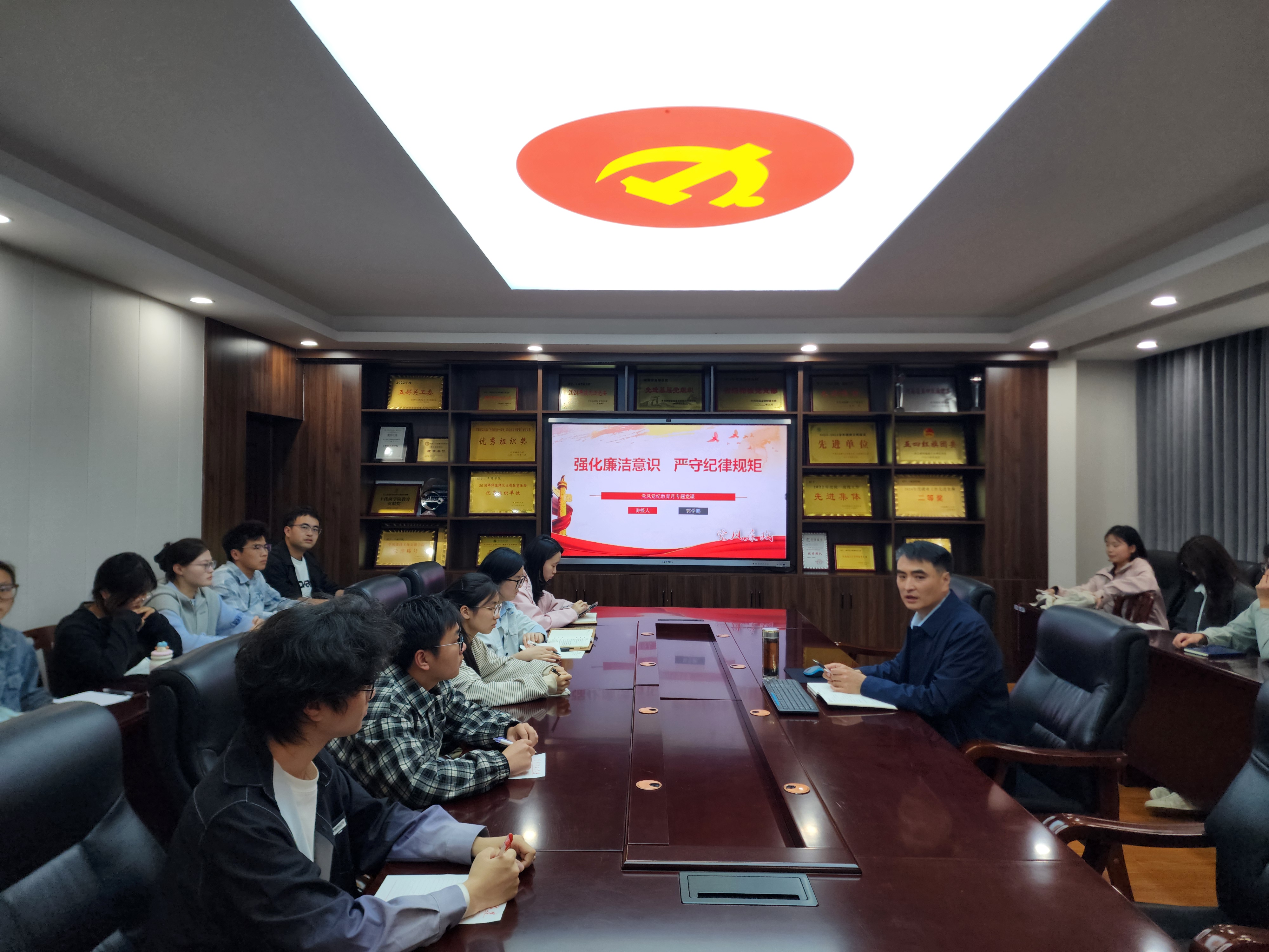 课上,郭学鹏系统梳理了反腐倡廉的历史脉络,回顾了中国共产党成立以来、抗日战争时期、解放战争时期、新中国成立后以及当前各阶段反腐败斗争的历程与成效,深刻阐释了廉洁自律始终是党赢得民心、永葆生机的制胜法宝。随后,他围绕“三个始终”对党员学生干部提出明确要求:一要始终敬畏组织、敬畏权力、敬畏法纪,时刻保持清醒头脑,守住权力边界。二要始终抓好制度执行、监督落实、廉政教育和用人导向,形成用制度管权、按制度办事的良性机制。三要始终做到想得合理、比得恰当、干得实在、行得端正、活得充实,从思想深处树立廉洁自律的价值追求。