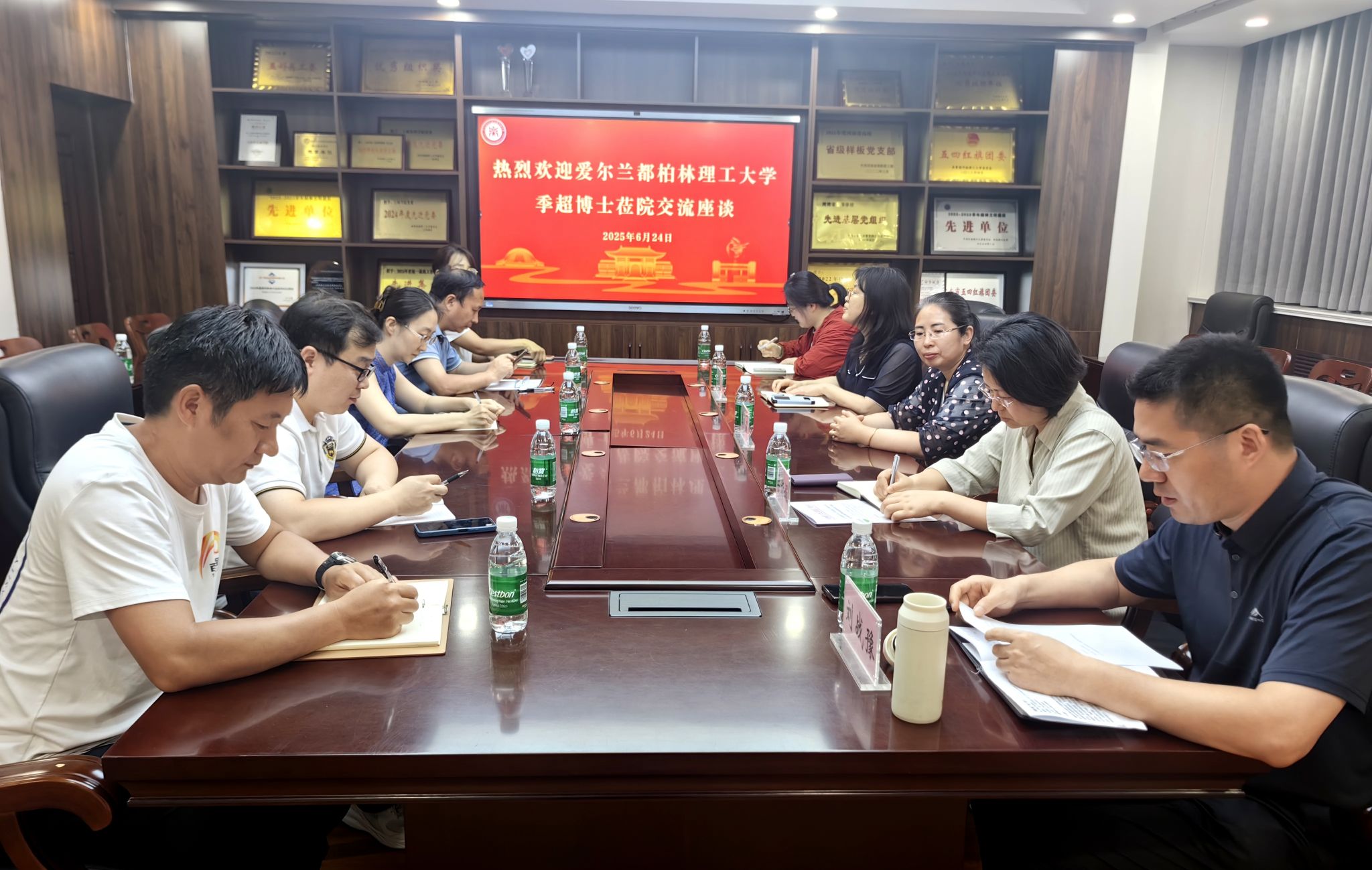 会后,在智慧供应链国际交流合作方面,季超在工商管理学院2201会议室与我校国际处处长李新娟,工商管理学院院长傅端香、副院长刘战豫及学院各系室主任进行座谈,并就学院教师赴都柏林理工大学培训、短期访学以及学生赴都柏林理工大学交流等方面常见的问题进行深入、细致交流。李新娟介绍了国家和学校公派留学的基本情况,并表示会积极为学生和老师创造机会和条件,提升学生和老师的国际化视野。傅端香对学院教师和学生国际化现状进行了说明,并表示会大力支持青年教师访学和学生国际交流,开阔眼界,增长知识,以更好的面貌服务社会。