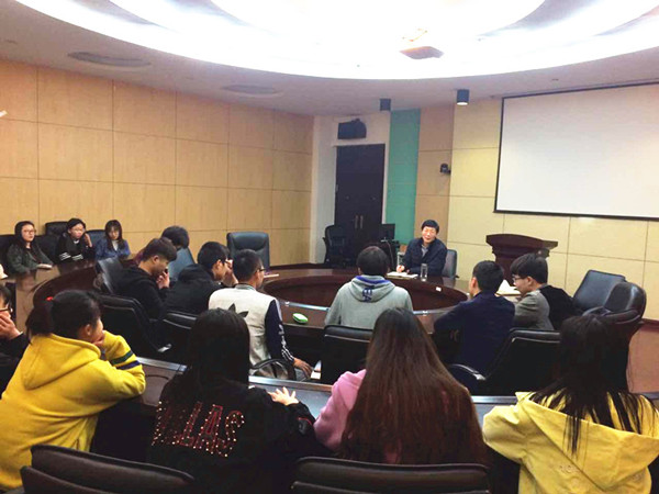 3月31下午,院党委书记成军祥在MBA案例室与工商16-2班学生亲切座谈。