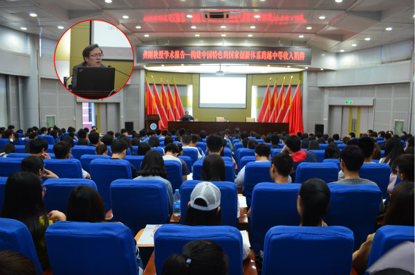 5月5日晚上,应学院邀请,云南财经大学首席教授、博士生导师、经济学院院长龚刚在力行楼学术报告厅作了题为“以构建中国特色的国家创新体系跨越中等收入陷阱”的学术报告,学院近300名师生聆听了报告,报告会由院长曾旗主持。
