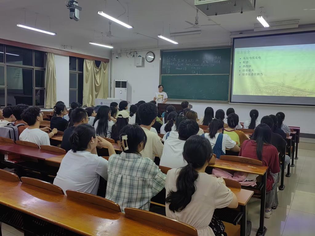 为增强学生安全意识,提高学生安全防范素养,为学生成长保驾护航,9月18日,辅导员崔冬霞在经管楼1104教室组织2022级学生召开安全主题班会。
