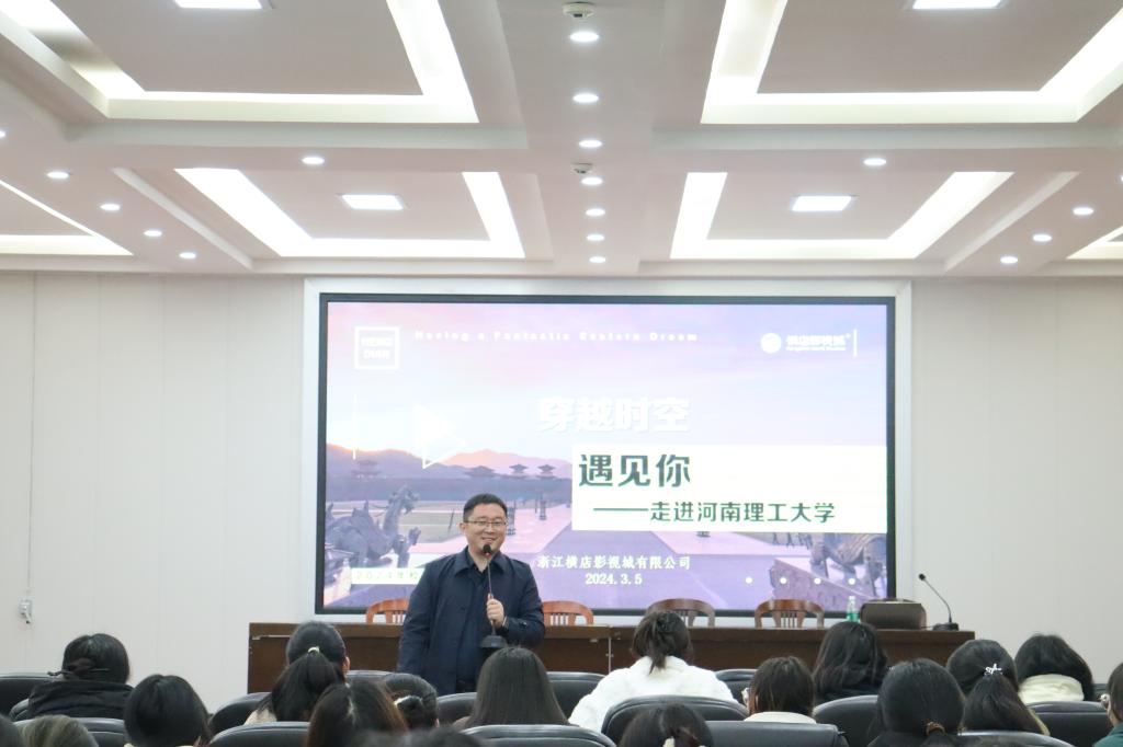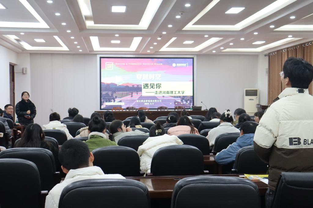 会议伊始,石慧央结合横店影视城的宣传片,从企业发展历程、企业文化、实习就业岗位以及薪酬福利四方面为同学们系统地介绍了横店影视城有限公司,她表示,作为拥有多元化业态和新兴产业的企业,横店集团有信心成为高校学生未来职业生涯的“加分项”。随后,李建杰从自身丰富的职业成长经历出发,向同学们阐明了“行行出状元”的道理,并勉励同学们要秉持从一而终的理念,无论哪个岗位,都要在实干中成长,脚踏实地、踔厉奋发。最后,李建杰谈及企业发展与青年的关系,他强调,企业发展离不开优秀人才,青年是企业发展永葆生机的强大生力军,企业是青年学习和成长的有利平台。会议互动交流环节中,现场气氛活跃,同学们踊跃发言,提出自己的疑问,李部长耐心解答,阐述了当代社会职场现状并对同学们未来职业规划提出了建议。