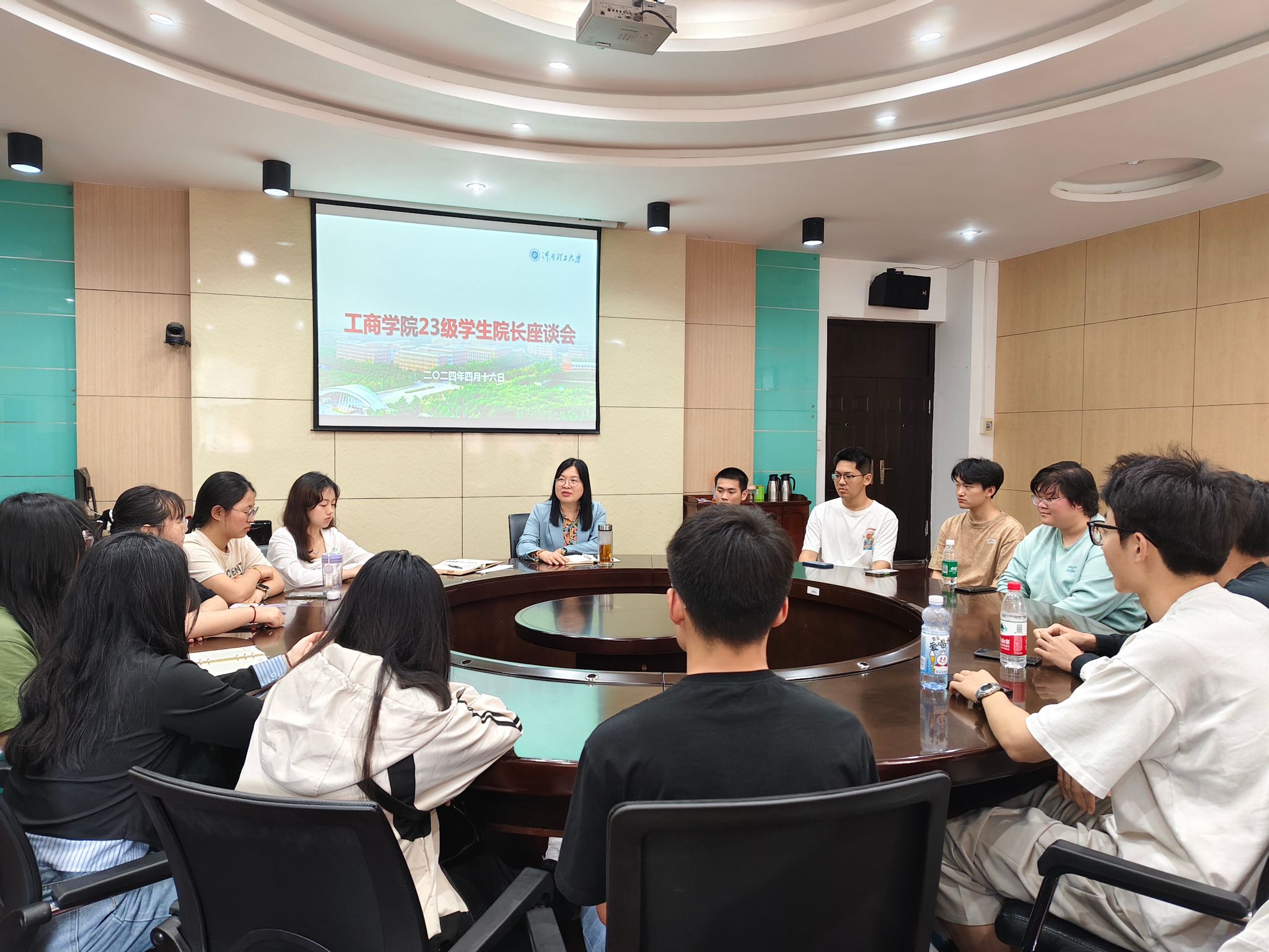 为深入了解工商类2310班学生在校学习及生活情况,促进师生间的深入交流。4月16日下午,我院在经管楼1106会议室召开座谈会,院长傅端香、辅导员赵婷及工商类2310班全体同学参加了此次会议。会议由赵婷主持。
