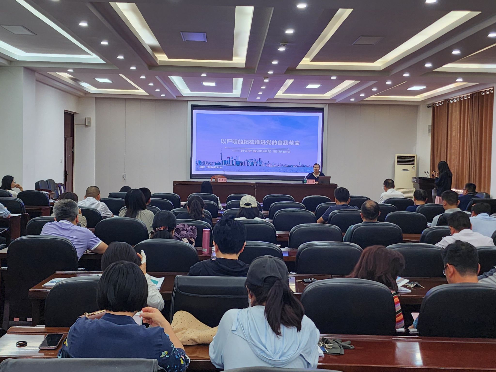 为了持续推进党纪学习教育,扎实开展好党风党纪教育月相关活动,5月14日下午,我院邀请马克思主义学院副教授马莉为全院教职工作《以严明的纪律推进党的自我革命》专题报告。报告会由学院党委副书记赵伟利主持。