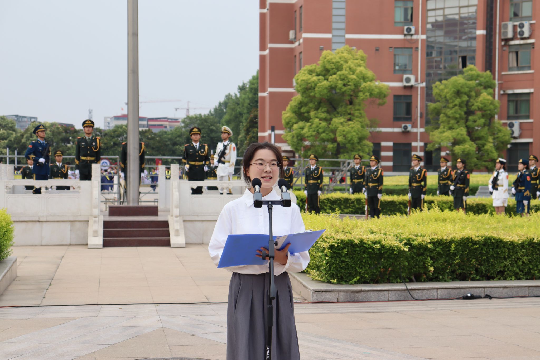 仪式伊始,赵伟利宣布升旗仪式正式开始。升旗仪式第一项,国旗护卫队队员迈着铿锵有力的步伐,昂首挺胸,庄严地将鲜艳的五星红旗缓缓升起。伴随着雄壮的国歌声,师生们神情肃穆,向国旗行注目礼,表达了对伟大祖国的深深敬意。接着,由管玉铮、刘沂佳、孔子豪、徐霖、郭凯玉、牛宇烨六位同学进行诗歌朗诵《致屈原》。随后,红色歌曲《万疆》的旋律响起,歌声激昂澎湃,同学们聚精会神地聆听。歌声过后,学生代表工商实验2201班张耀心同学上台发言。她以“青青端午粽,灼灼爱国心”为题,详细介绍了端午节的来历和风俗,并强调了端午节所蕴含的爱国精神和民族精神。她号召青年一代要汲取端午节日文化中的营养和智慧,以爱国之情、健康之身、奋进之姿,为实现中华民族伟大复兴的中国梦贡献青春力量。