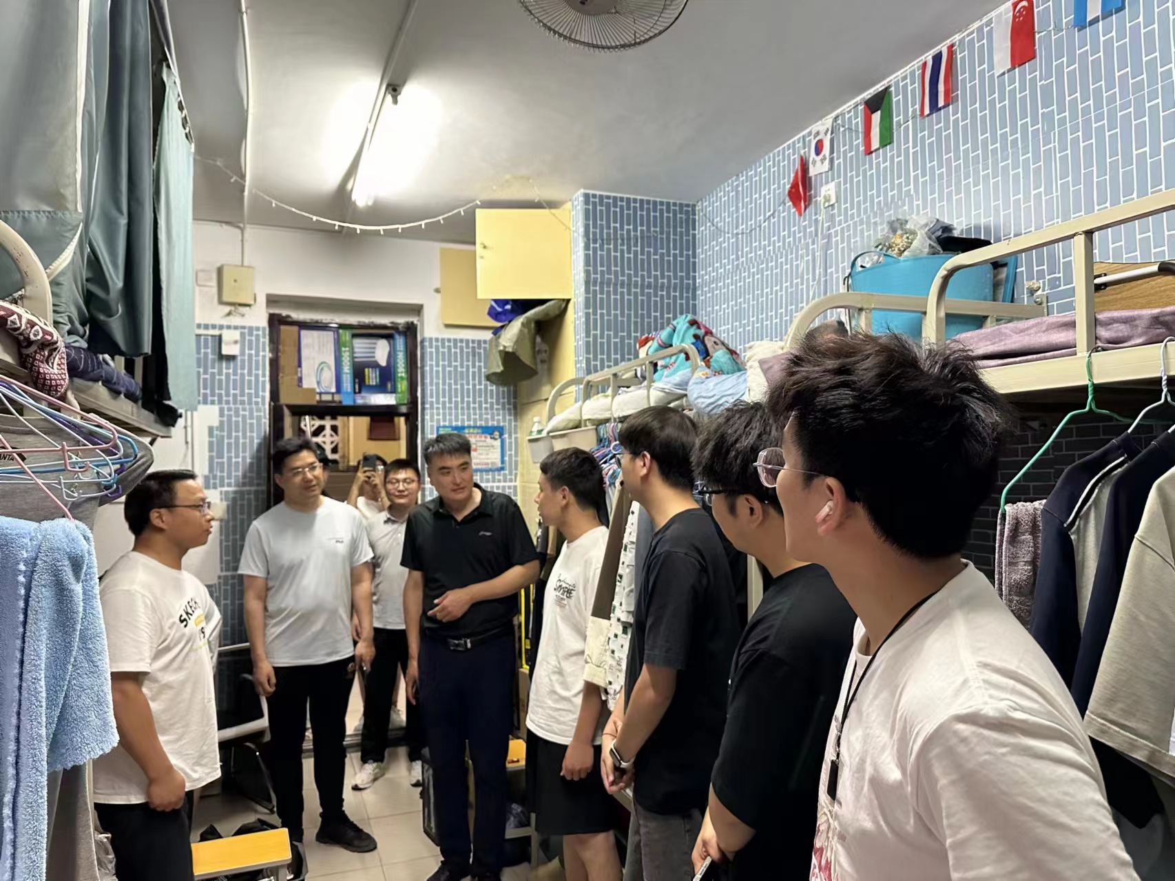 端午节“遇上”毕业季,为进一步做好学生教育、管理和服务,及时了解学生生活情况和思想动态,从严从紧做好宿舍安全工作,营造干净整洁、安全文明的宿舍环境。6月11日晚,学院领导带队,全体辅导员以及毕业班班主任代表结队深入学生宿舍,对宿舍安全隐患、卫生环境及文化建设进行检查,并与学生面对面交流,了解和掌握学生的所思、所想、所需。
