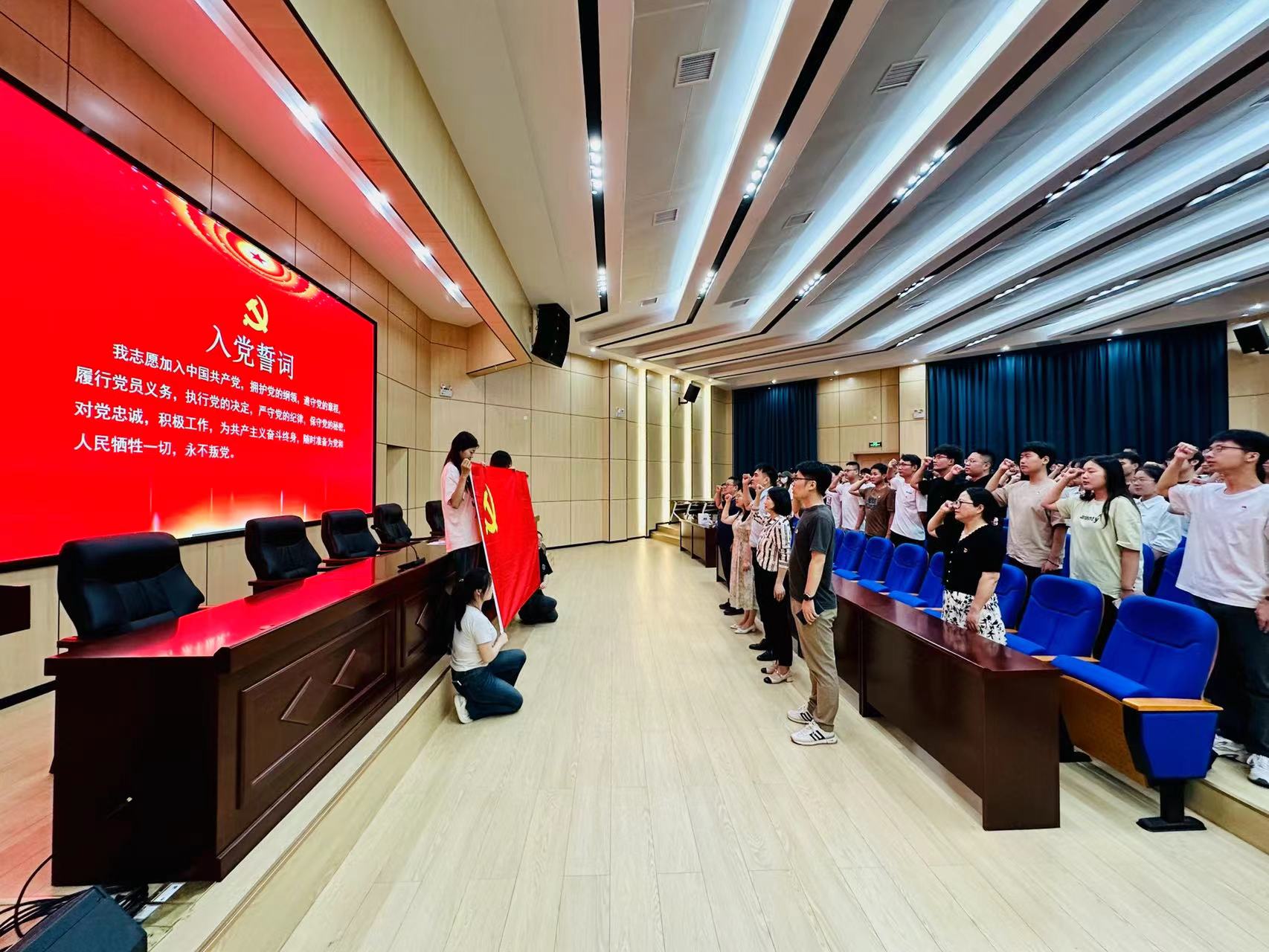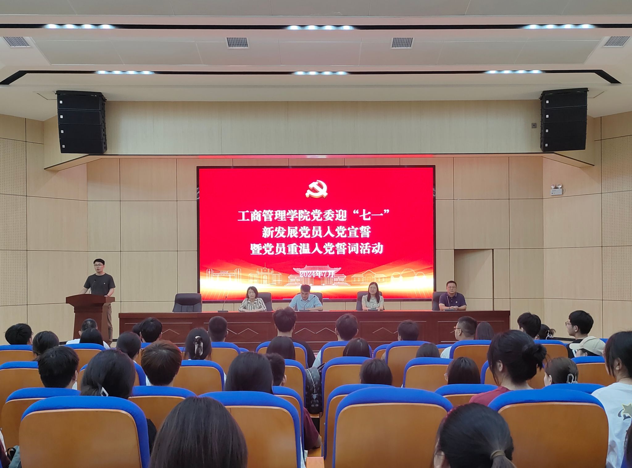 为增强新发展党员的责任感、使命感,坚定理想信念,7月1日下午,我院在经管楼尚为报告厅举办“迎七一”新发展党员入党宣誓暨老党员重温入党誓词活动。学院领导、党委委员、支部书记及新发展党员参与此次活动。本次活动由学院组织员马辉老师主持。