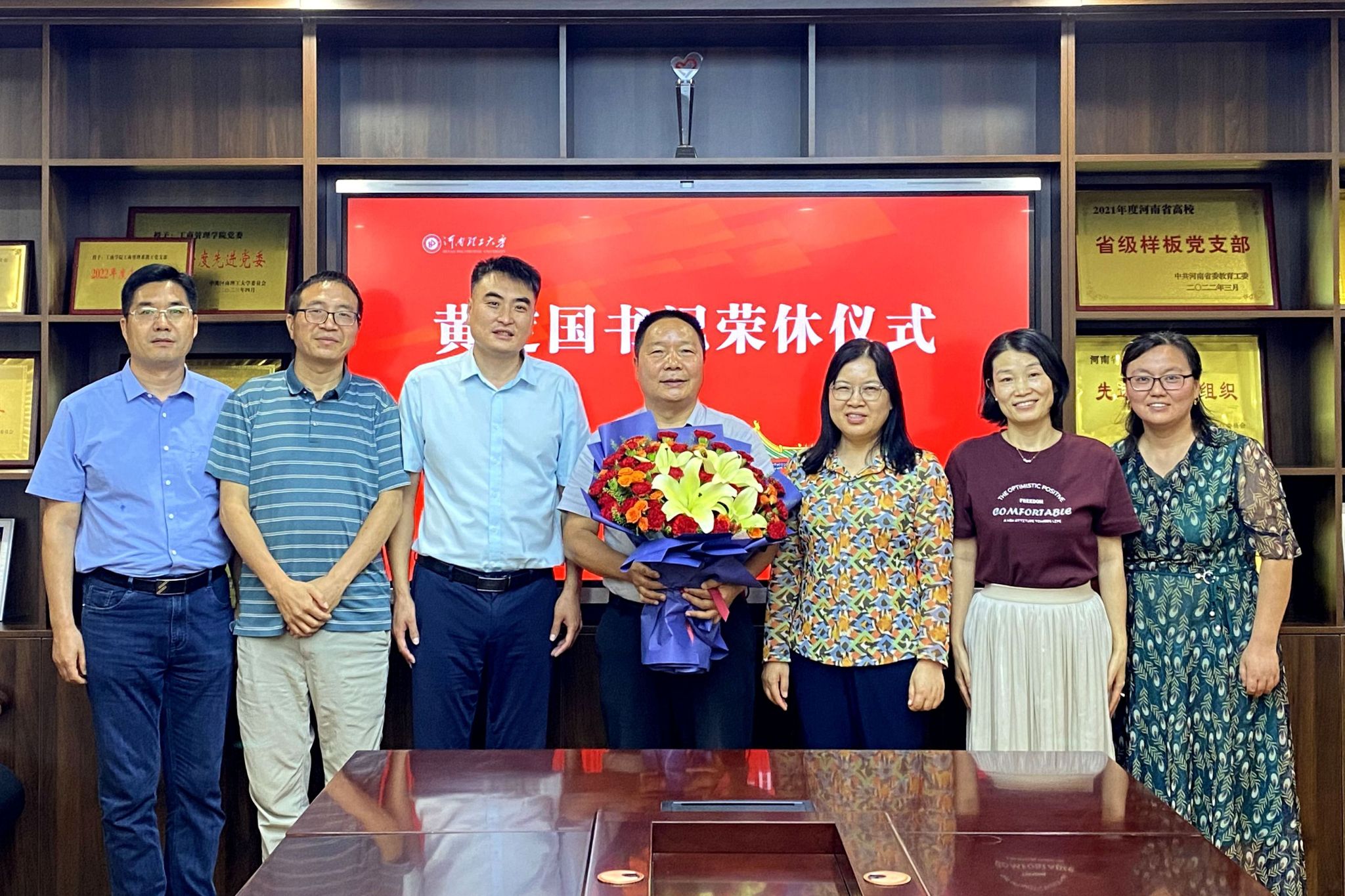 倾尽丹心育桃李,奉献韶华铸师魂。为充分体现学院对退休职工的敬意和关爱,增强退休职工的荣誉感和归属感,7月10日下午,我院在经管楼2201会议室为黄定国书记举办荣休仪式。学院领导班子以及部分教师代表参加仪式。仪式由学院党委副书记赵伟利主持。