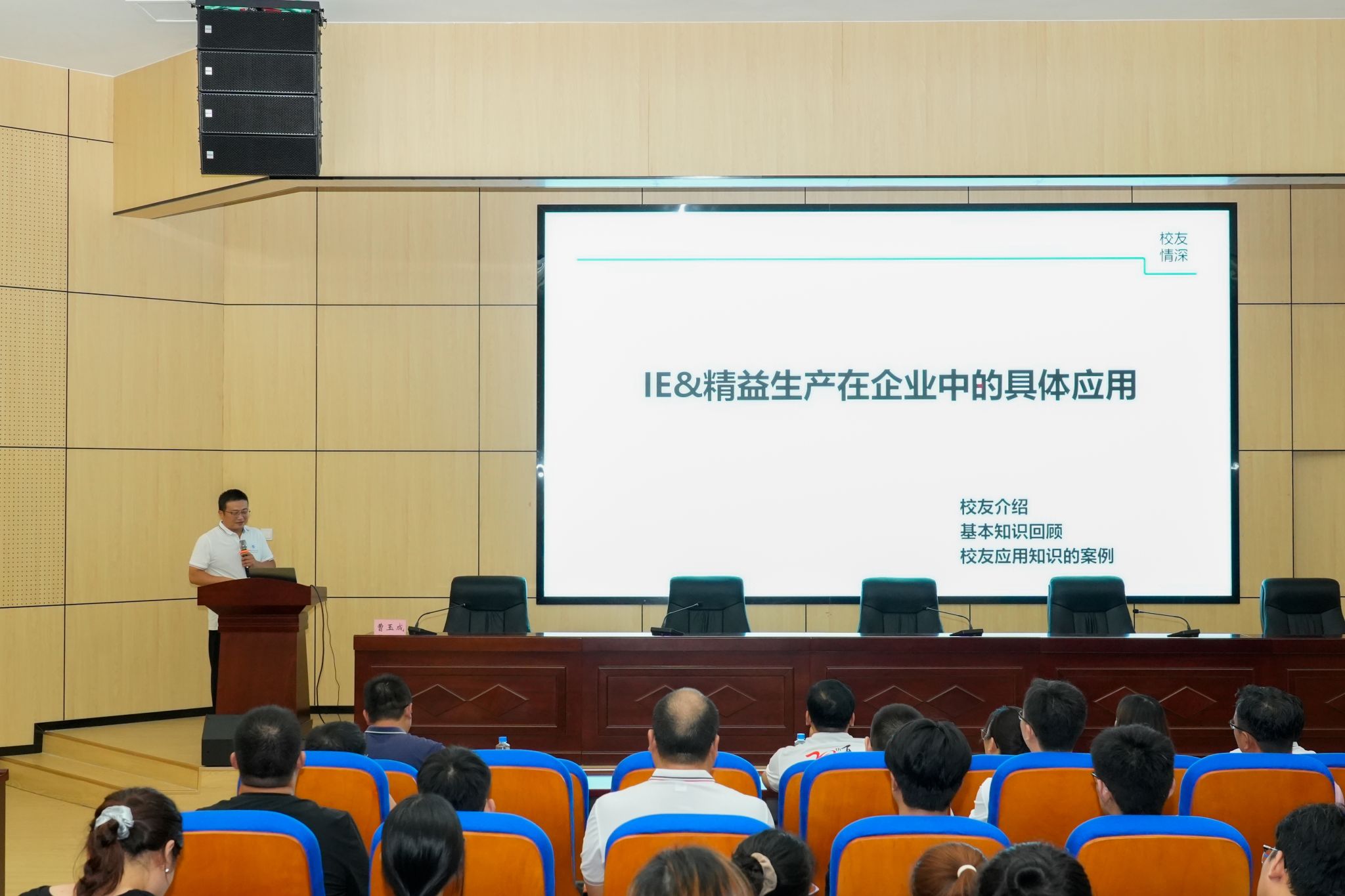 在校友经验分享会上,校友曹玉成作了题为《IE与精益生产在企业的具体应用》的精彩报告。五位企业硕导与在场师生进行了深入互动。他们把20年来的经验与心得无私分享给了在场师生,大大提升了在校学生对工业工程专业的认知度和自信度,同时对教师们也有很大启发,对于今后改进教学内容和方法、提高教学质量有很大帮助。