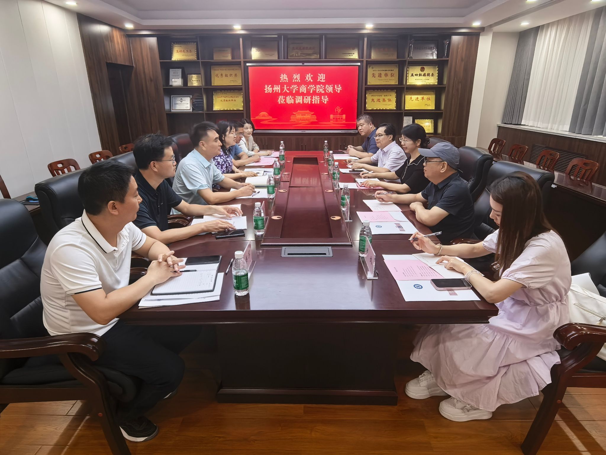 8月7日上午,扬州大学商学院党委书记解小青、院长李志斌一行到工商管理学院调研交流,座谈会在经管楼2201会议室进行。工商管理学院、财经学院部分领导班子成员参加会议。座谈会由工商管理学院院长傅端香主持。