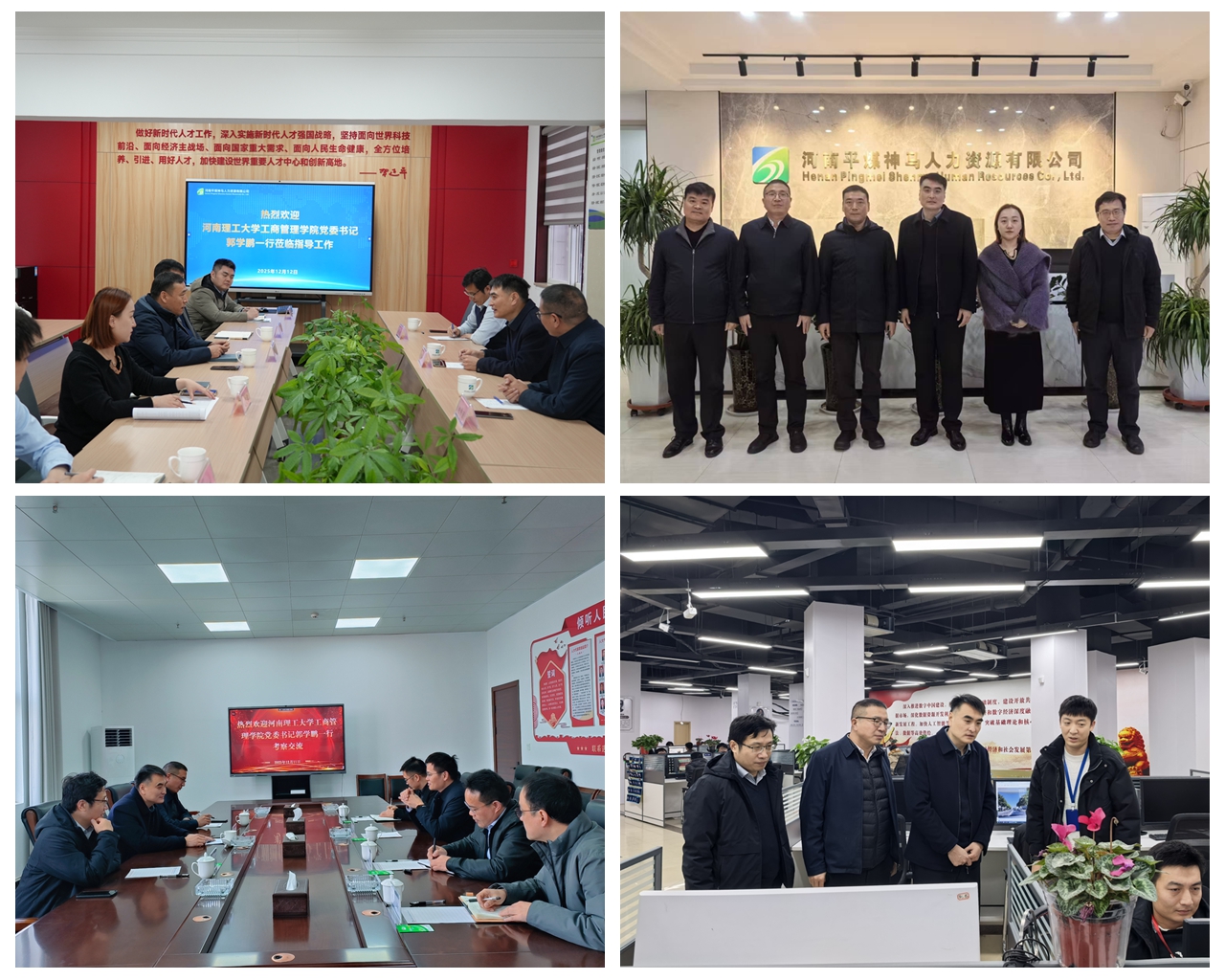 为精准对接市场需求,加强校企合作,积极拓宽实习和就业渠道,12月11日至12日,工商管理学院党委书记郭学鹏、副书记赵伟丽一行三人,前往驻马店、平顶山市开展访企拓岗专项活动。