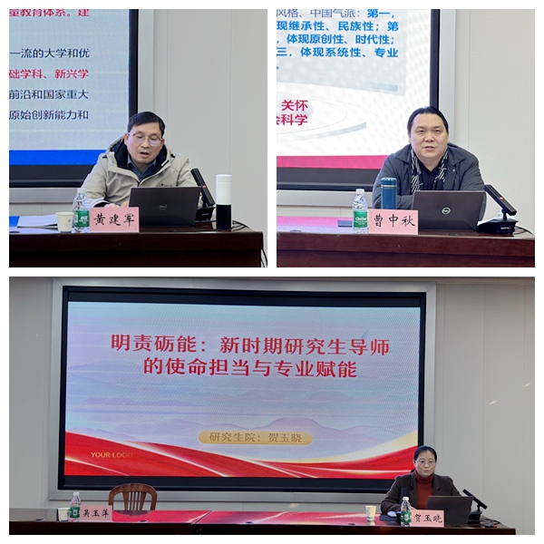 20日上午,宣传部副部长鲁小茜运用“望闻问切”方法,强调了意识形态的重要性,为学院意识形态工作提供实用指导。20日下午,研究生院副院长贺玉晓作《明责砺能:新时期研究生导师的使命担当与专业赋能》报告,她结合生动案例,强调研究生招生中制度规范、文件严谨与复试公平的重要性,为学院研究生招生风险防范给出具体建议。