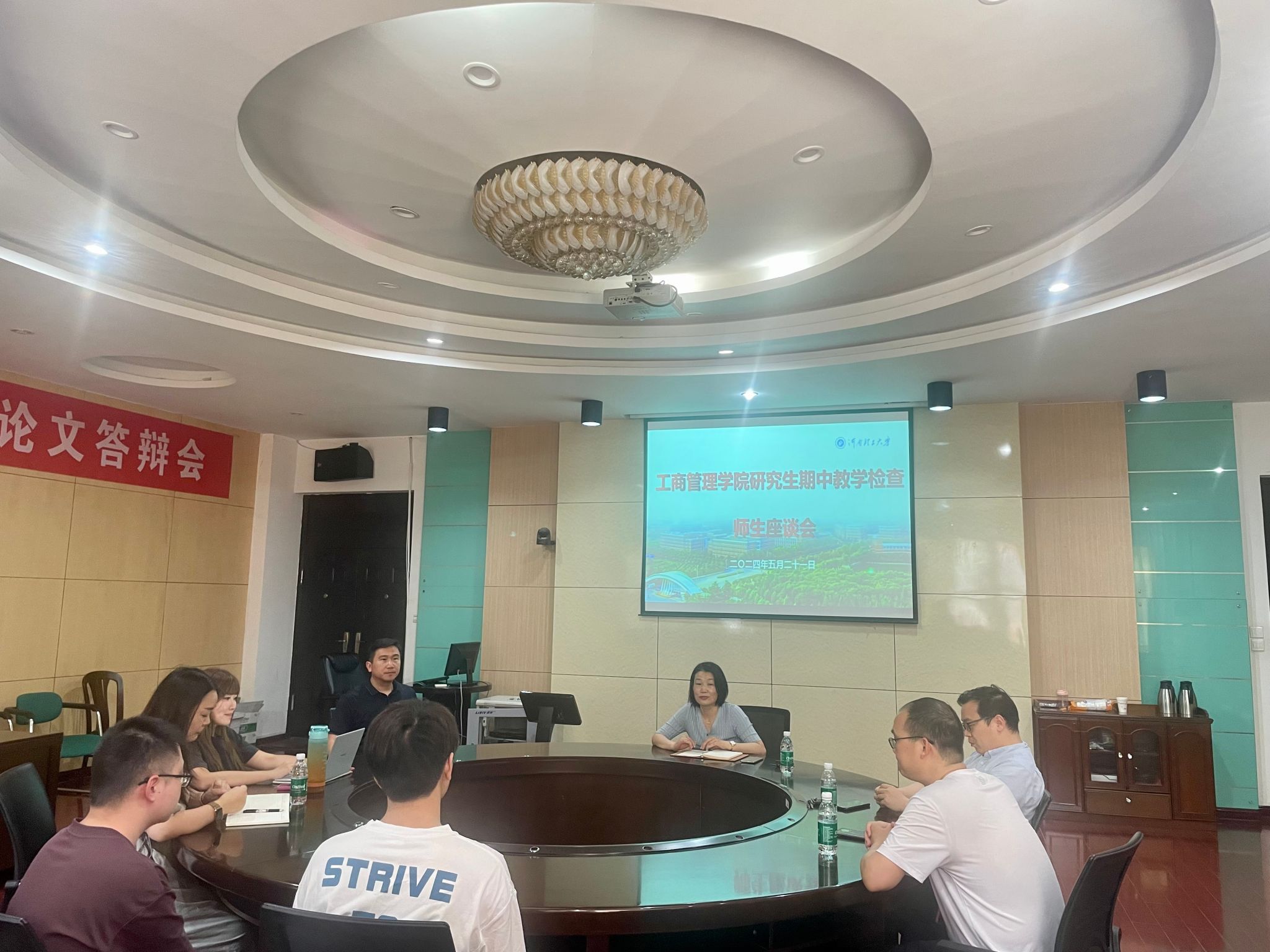 5月21日下午,学院在1106会议室举行本学期研究生期中教学检查师生座谈会。副院长吴玉萍、教师代表、研究生管理办公室人员和学生代表参加了座谈会。