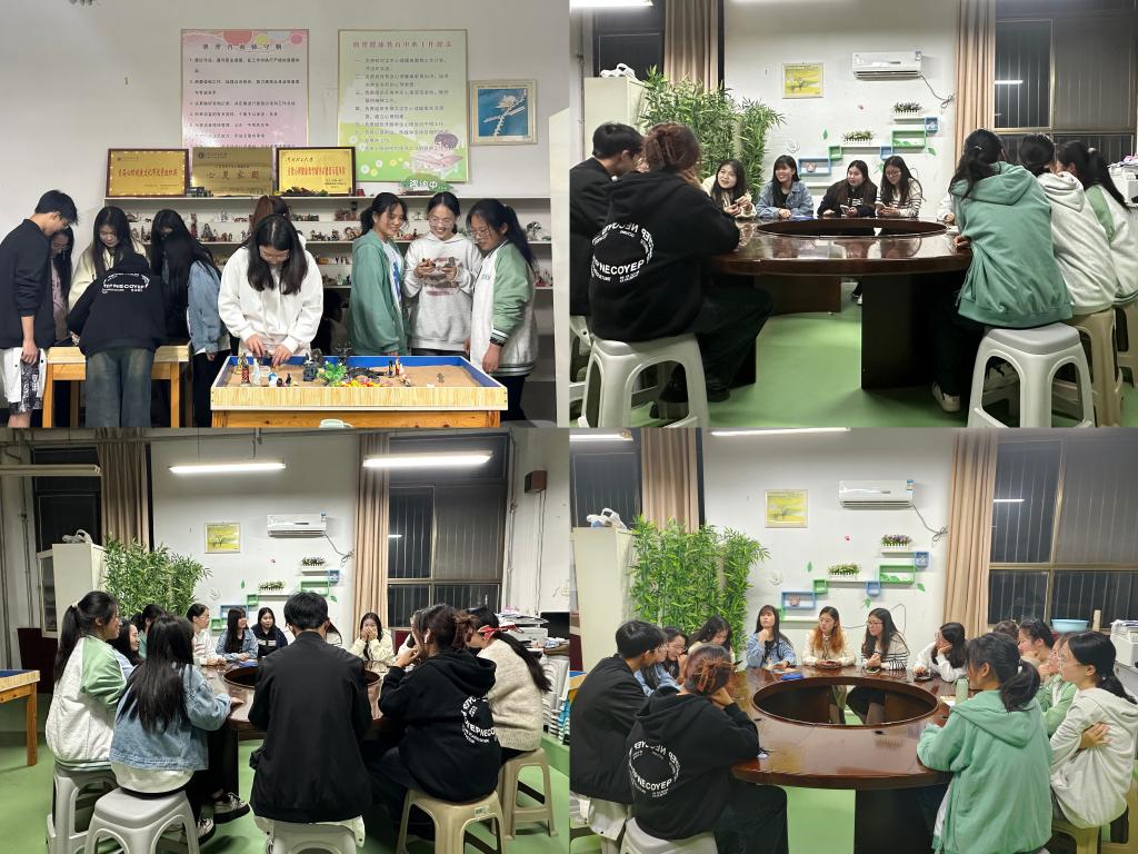 本次活动借助MBTI十六型人格开展话题。活动流程共分为三个部分,第一部分:将在场十二位同学分为两个小组,并在各小组内设置以MBTI十六型人格为区分的“卧底”角色,通过小组合作沙盘演绎,观察小组成员性格特征并找出组内“卧底”。此环节利用沙盘演绎迅速拉近了小组成员关系,现场萦绕着大家的欢声笑语,同时也让同学们将眼光聚焦到了各人的性格特征上,为后续活动做好了铺垫;第二部分:小组分别选出对面组内最想了解的两位同学,通过四位同学的自我介绍,剖析其具体MBTI各项数值。本环节将通过猜测他人性格数值这一引导性线索,让同学们对MBTI各类性格表现有一个清晰地认识,在揣摩他人的同时,思考自己的性格特点;第三环节:MBTI与职业发展大讨论,每个人将在纸上画出自己的职业生涯规划图,并就此图分享一下自己的职业生涯规划及MBTI性格对自己职业选择上的影响。同学们的回答或自信满满、条理清晰,或虽抱着些许困惑,但仍保持着一个光辉灿烂的发展愿景。活动在大家对未来的美好期盼中走向尾声,