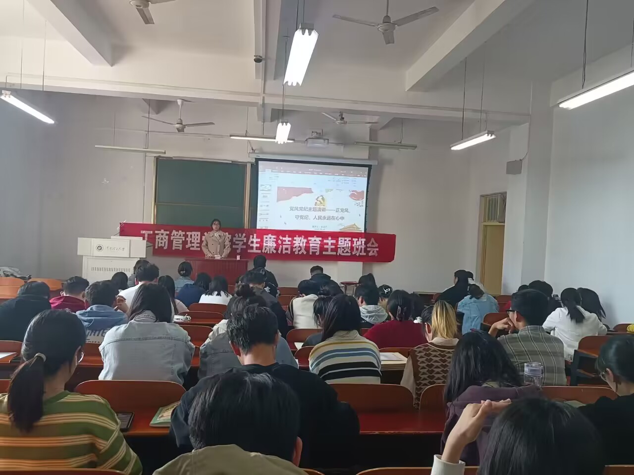 为了提高学生党员的党风党纪意识,进一步加强学生党支部党风廉政建设,10月22日下午,我院本科生党支部在经管楼1205教室举办了“坚持理想信念的‘高线’,守住党规党纪的‘底线’——党风党纪主题演讲”活动,本科生党支部书记张浩然、党支部全体成员参加活动,活动由党支部成员杨晓霞主持。