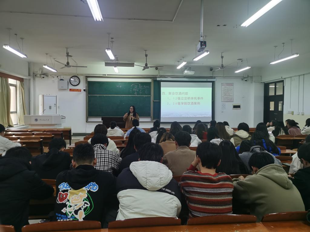 为提高广大学生的安全防范意识、优化班级的学习氛围、加强23级新生学生手册的了解,提高全体同学的诚信考试、诚实做人的意识,11月21日-23日工商管理学院各个学生班级在辅导员老师的带领下,纷纷开展了各具特色的主题班会活动。