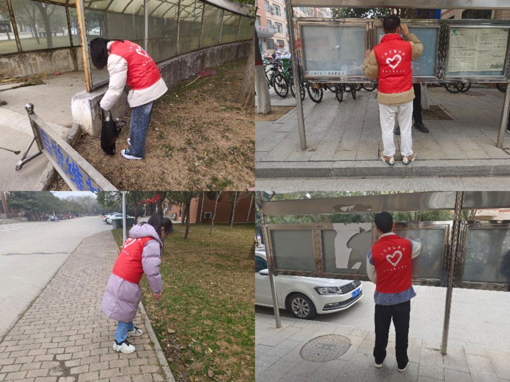 活动中,志愿者们分工合作,身穿红色马甲,手持垃圾袋、垃圾夹等清洁工具,沿着我院道路以及草坪认真地捡拾路人丢弃的碎纸屑、烟头等生活垃圾,对马路边的树叶、塑料袋等进行清扫。很快枯枝落叶,卫生死角、白色污染以及烟头纸屑等一一捡起,清理干净。与此同时,另一部分同学拿起抹布仔细擦拭布告栏,将布告栏擦拭的一尘不染。活动末尾,大家总结经验,归还工具。