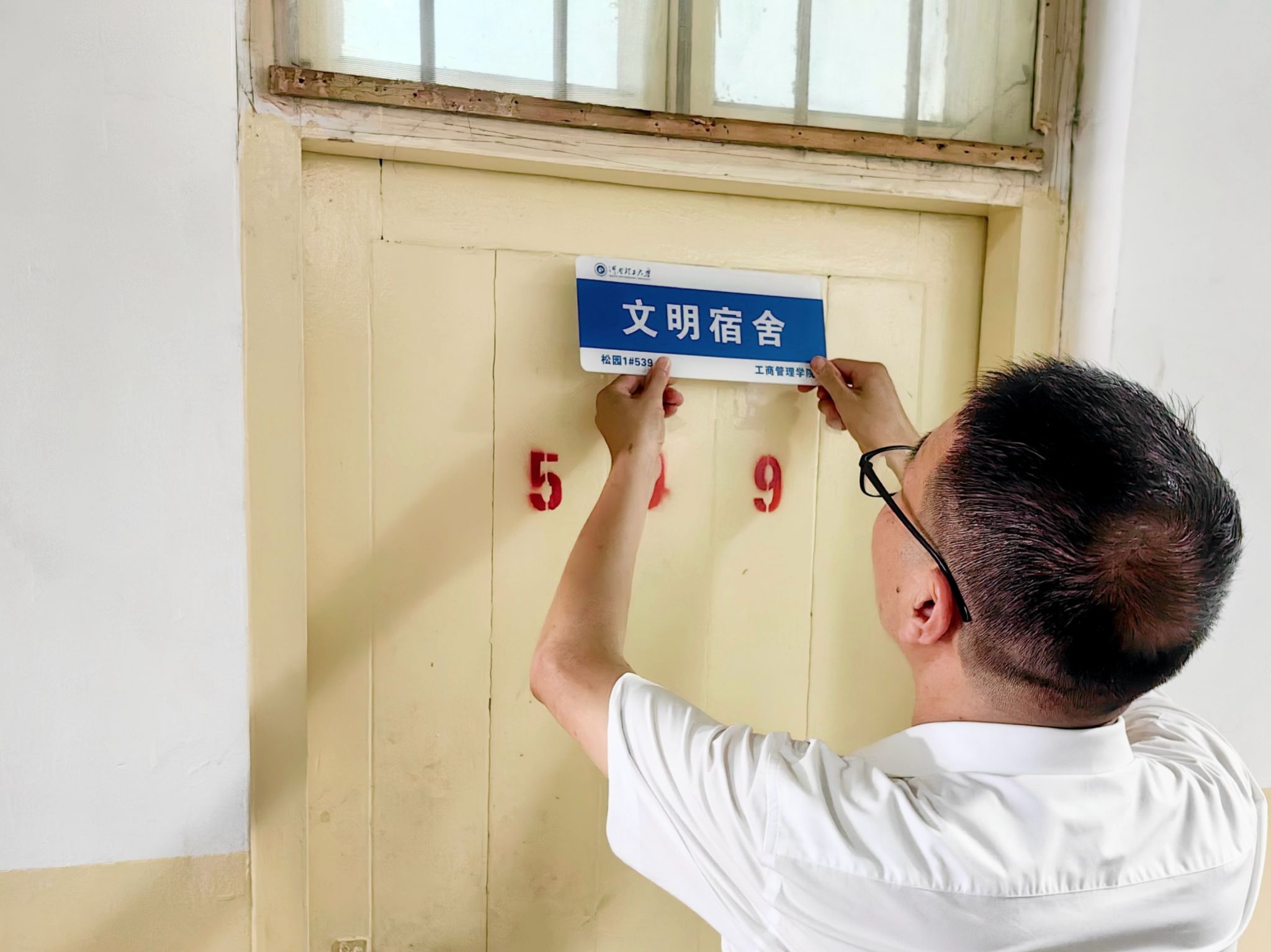 为进一步发挥党员宿舍和校级文明宿舍在宿舍生活中的模范带头作用,加强学院宿舍的规范化管理,6月12日,我院于兰四宿舍楼和松一宿舍楼举行党员宿舍和校级文明宿舍挂牌仪式。我院党委副书记赵伟利,团委书记卢宏亮和22级专职辅导员崔冬霞参与此次挂牌活动,共同为党员宿舍和校级文明宿舍挂上了象征着荣誉和责任的牌子。