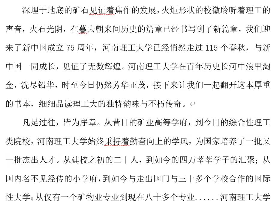 活动伊始,工作人员向各年级学委发送比赛信息进行宣传。我院学生接到通知后积极报名,并按照投稿要求将电子版稿件发送至工作人员邮箱,完成参赛投稿。此次比赛涌现出众多优秀作品,其中,晁佳瑶同学的作品《栉风沐雨砥砺行,春华秋实满庭芳》从我校发展的百年历程、百年成就和展望未来三个方面,叙说我校自创立以来重要历史事件和校园变迁史,总结了我校在科研、人才培养方面的显著成就,表达了对我校未来发展的美好愿景;岳增錡同学的作品《且以从容看过往,且以笃行向未来》描绘了我校同学在教学楼和图书馆努力学习的身影以及我校四季不同的美景,表达了对百年理工的美好祝愿。除了以上展现的优秀作品,还有米永欢同学的作品《理工岁月长,风华映今朝》,以自己在校经历,现身说法阐述理工大“明德任责”校训和“好学力行”校风对其在校生活的深刻影响。随后进入作品筛选阶段,工作人员将所有文稿整理分类,由承办单位相关工作人员担任此次作品筛选的评委,评委们秉持公平、公正和择优的原则对作品进行评鉴打分,选出优秀作品。最后,公布此次活动评选结果,其中米永欢、晁佳瑶、岳增錡、唐佳怡、孙艺颖、黎晨6名同学的作品在本次比赛中脱颖而出,成功推选至校赛。