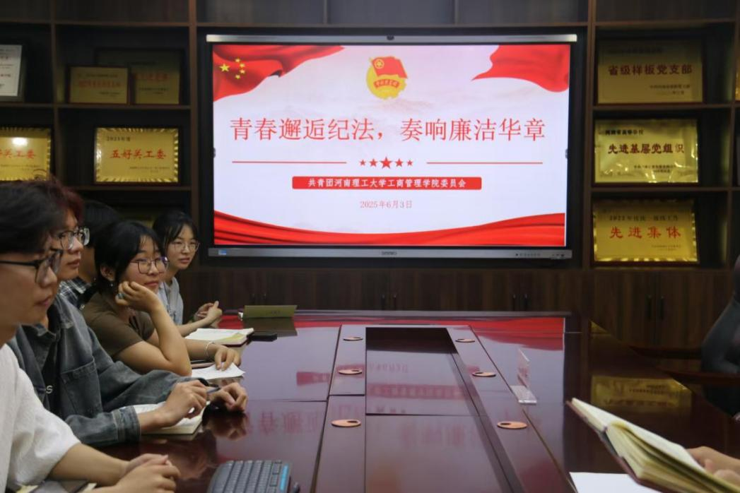 为深入学习贯彻党的二十届三中全会精神,切实加强新时代青年法治教育,6月3日,学院团委书记卢宏亮在经管楼2201会议室主持开展了“纪法与青春同行”主题活动,我院团支部主要负责人参加。