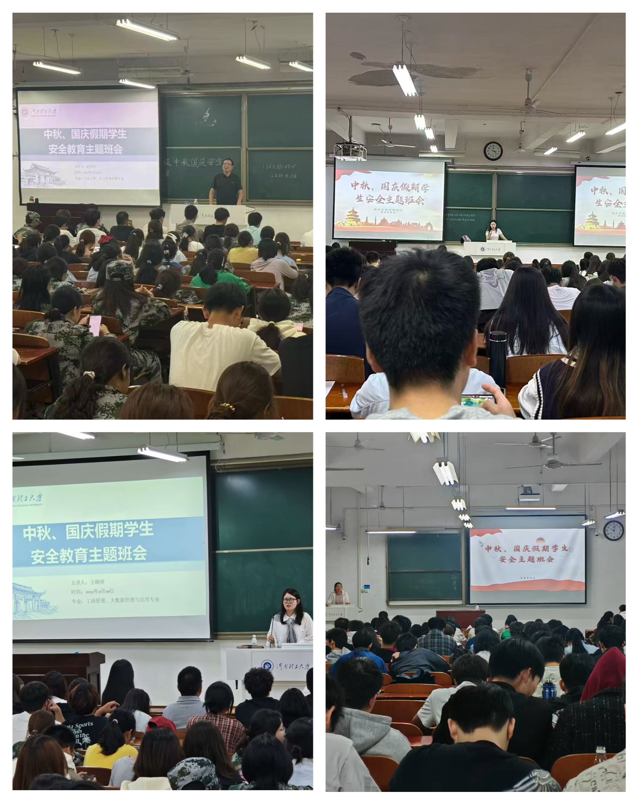 中秋、国庆双节将至,为切实增强学生安全意识,保障假期校园安全稳定,近日,工商学院全体辅导员深入各年级班级,全面开展假期安全主题教育班会,筑牢校园安全防线。