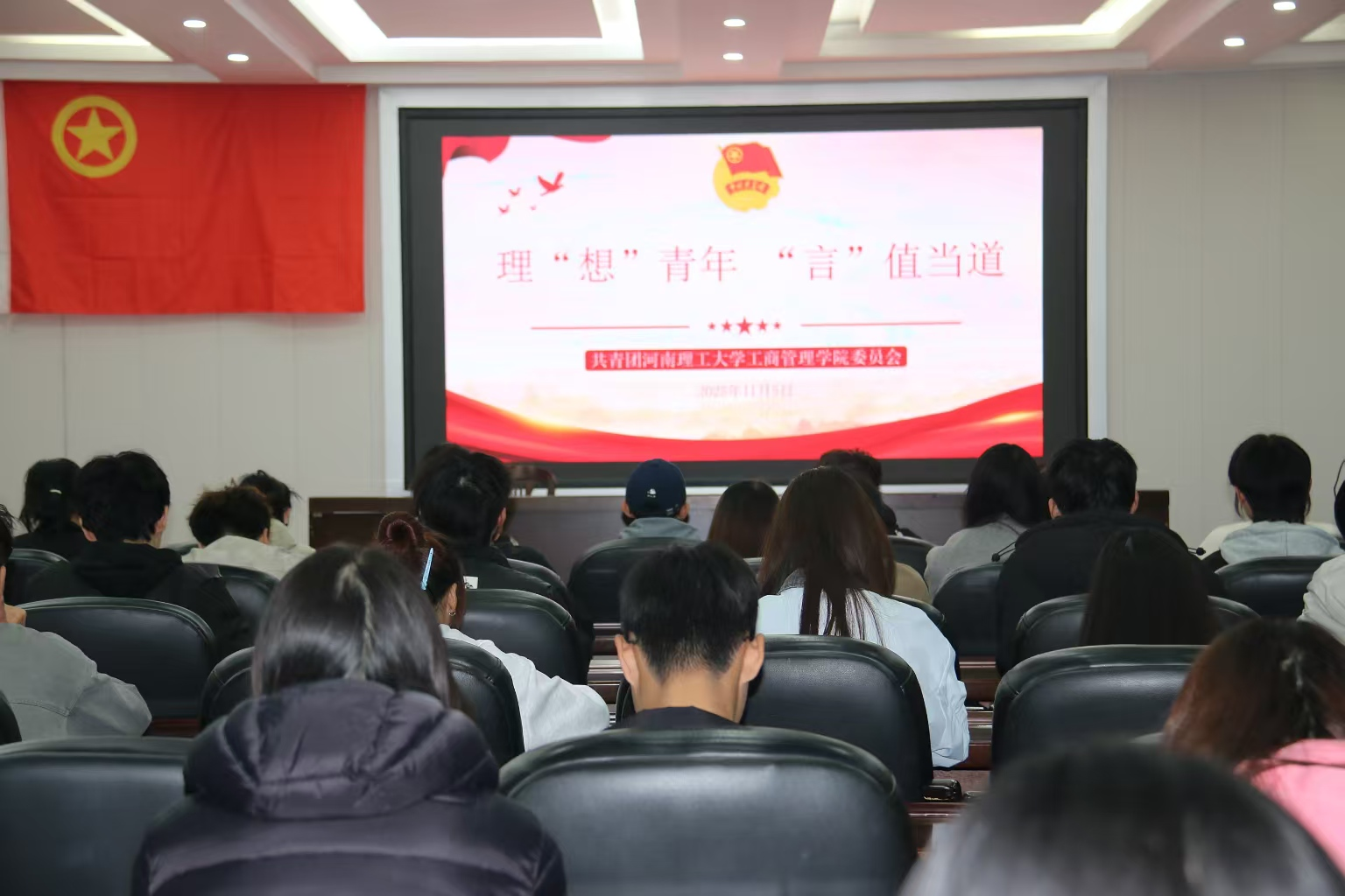 为加强团员队伍建设,提升入团积极分子的政治素养和理论水平,我院团委于2025年11月14日在经管楼1105教室开展了以"理'想'青年,'言'值当道"为主题的第二期入团积极分子培训。本次培训由团委书记卢宏亮主持,全体入团积极分子参加。