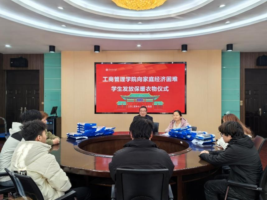 为深入贯彻落实国家资助政策,切实关怀家庭经济困难学生的成长与发展,12月25日下午,我院家庭经济困难学生保暖衣物发放仪式在经管楼1106会议室举行。学院党委副书记赵伟利、2023级专职辅导员魏晓慧及家庭经济困难学生代表参加。