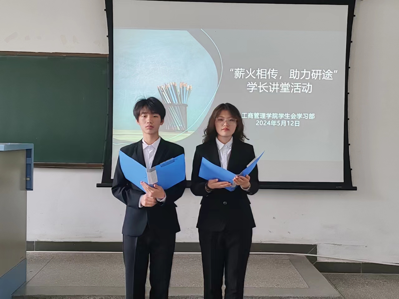 为了帮助大一、大二学生提前了解考研规划,为未来的求学之路打下坚实基础,5月12日下午,工商学院学生会学习部在经管楼1202教室举办第二期“薪火相传,助力研途”学长讲堂活动。此次活动邀请大四学生王帅普、杜家惠、尹彤彤、李瑛巧进行分享,学习部成员勾文浩、牛宇烨担任主持人。