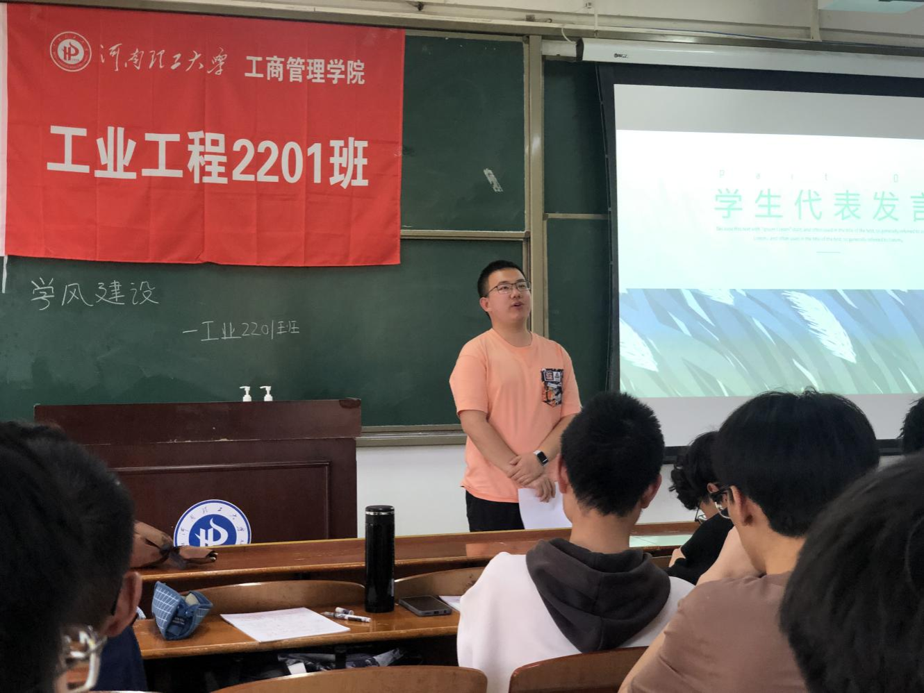 9月27日晚,工业工程2201班全体同学齐聚一号教学楼1104教室,正式举行了一场主题为“跨专业互动,你我争当先锋”的学风建设活动。此次活动有幸邀请到了我院学工办主任孙玉平老师亲临指导,并特邀机械学院的张宇兵同学进行跨专业考研的经验分享。工业2201班的全体同学积极参与,共同聆听了此次讲座。活动由姚文威同学主持。