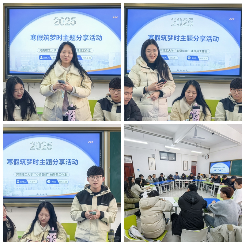 怀揣梦想,脚步自坚。2 月 25 日下午两点半,由我院 “心语馨晴” 辅导员工作室精心组织的 “寒假筑梦,坚持功成” 总结交流会在综合实验大楼 101 教室成功举办。本次活动由孙玉平老师担任主持人,吸引了40名学生踊跃参与,活动现场气氛热烈。