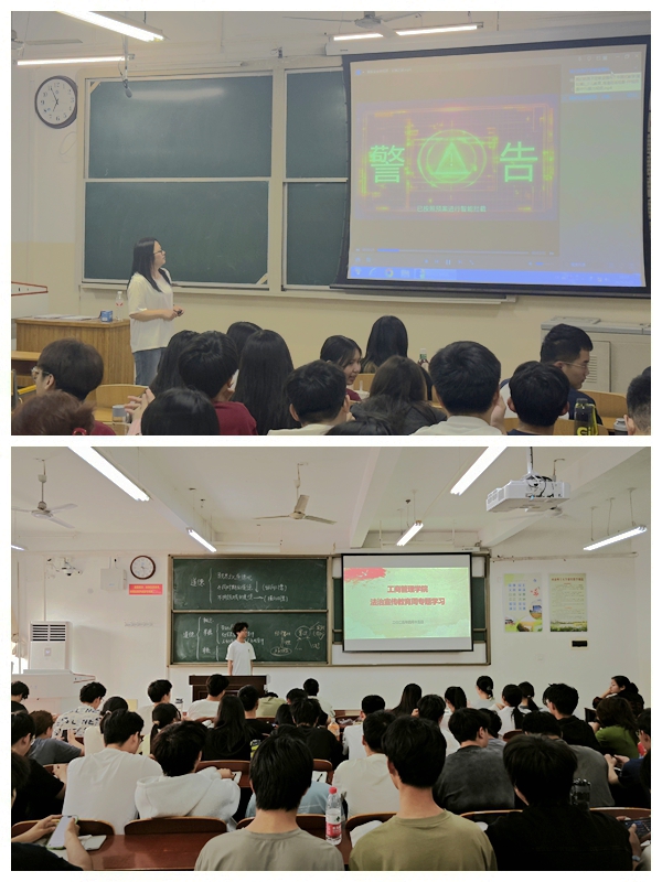 活动期间,学院聚焦“学法知法守法 成长成人成才”主题,多举措推进法治教育。24级、23级各班级通过主题班会的形式,深入学习学校的各项规章制度。各年级辅导员结合近年来校园内出现的典型案例,详细解读了违反校规校纪的严重后果,引导学生树立守规则意识和法治意识。同时还针对防范校园暴力、校园欺凌和电信诈骗等热点问题,讲解了相关法律知识和应对方法。22级学生班级组织观看了法治影片,观影结束后,同学们还围绕影片中的法律问题展开热烈讨论,进一步加深了对法律的理解,理解了法律在生活中的重要作用。