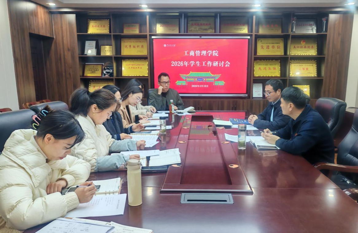 为全面总结2025年学生工作经验,科学谋划2026年工作,推动学生工作提质增效,3月19日下午,我院在经管楼2201会议室召开2026年学生工作研讨会。学院党委书记郭学鹏、党委副书记赵伟利出席会议,全体辅导员参加。