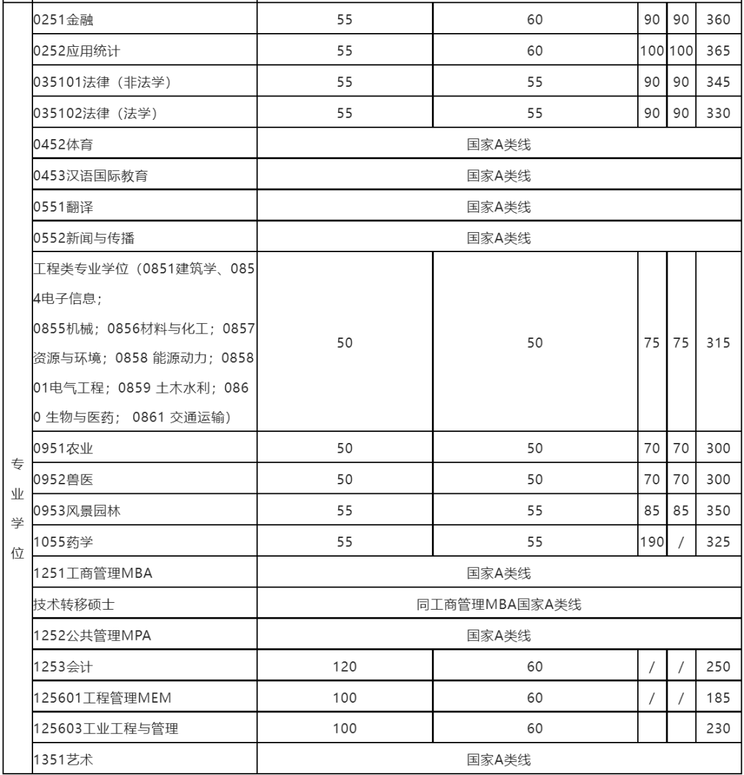 三、上述两表所列分数线(管理类联考除外)满足以下情况视同上线: