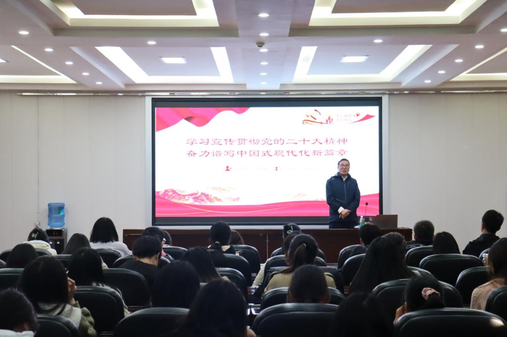 为进一步学习宣传党的二十大精神,端正我院积极分子的入党动机,11月21日下午,我院党委副书记赵伟利在1105会议室为我院入党积极分子培训班讲授《学习宣传贯彻党的二十大精神,奋力谱写中国式现代化新篇章》专题党课。