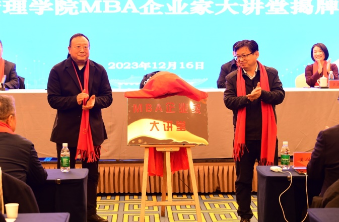 赵晓军书记与雷文成董事长共同为MBA企业家大讲堂揭牌