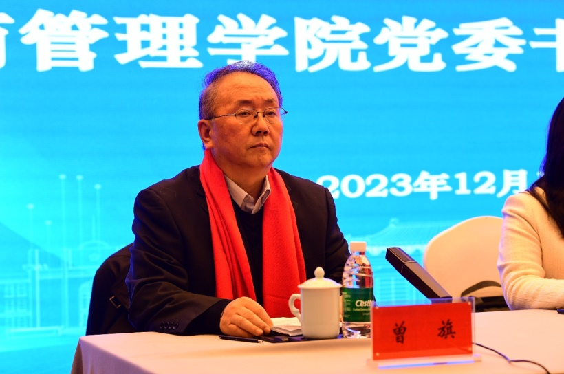 原工商管理学院院长曾旗汇报MBA校友联谊会筹备情况。成立MBA联谊会是全国各个拥有MBA教育项目的院校必备的校友组织,也是全体MBA校友热烈期盼的大事,学院领导高度重视。2023年学院新一届领导班子正式启动筹备工作,许书记多次主持召开党政联席会和专题会议讨论MBA校友联谊会成立事宜,并带队分别走访了省内外多位MBA校友,征求他们对筹备工作的意见和理事会人选的建议。成立MBA校友联谊会的指导思想是:“联络校友,增进感情;凝聚校友,牵线搭桥;宣传校友,展示风采;支持校友,共同发展”。曾旗表示在学院党委的坚强领导下,有广大校友的共同努力,工商管理学院MBA校友联谊会一定会以品牌校友会建设为目标,以联谊会章程为行动指南,紧密联系广大MBA校友,积极开展主题活动,为学校和学院高质量发展做出新的贡献。