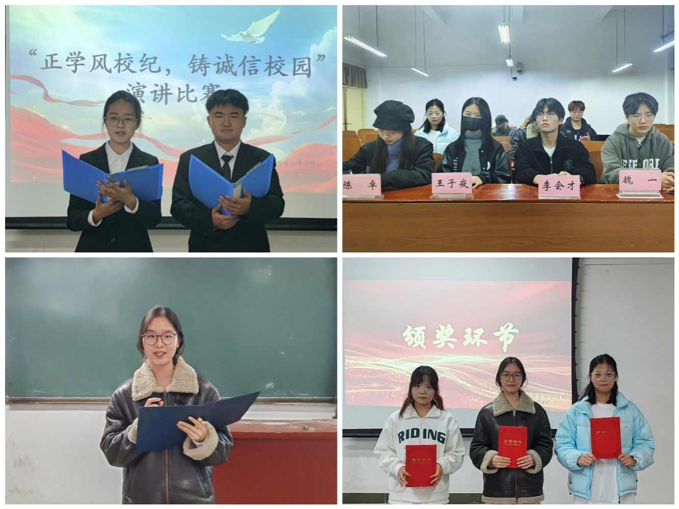 此次演讲比赛的成功举办,不仅促进了选手之间的诚信交流,也有利于弘扬诚信的价值观,深化德育教育,帮助同学们树立正确的考试观念,自觉遵守考试纪律,进一步推动我院优良学风的和诚信机制的建设。
