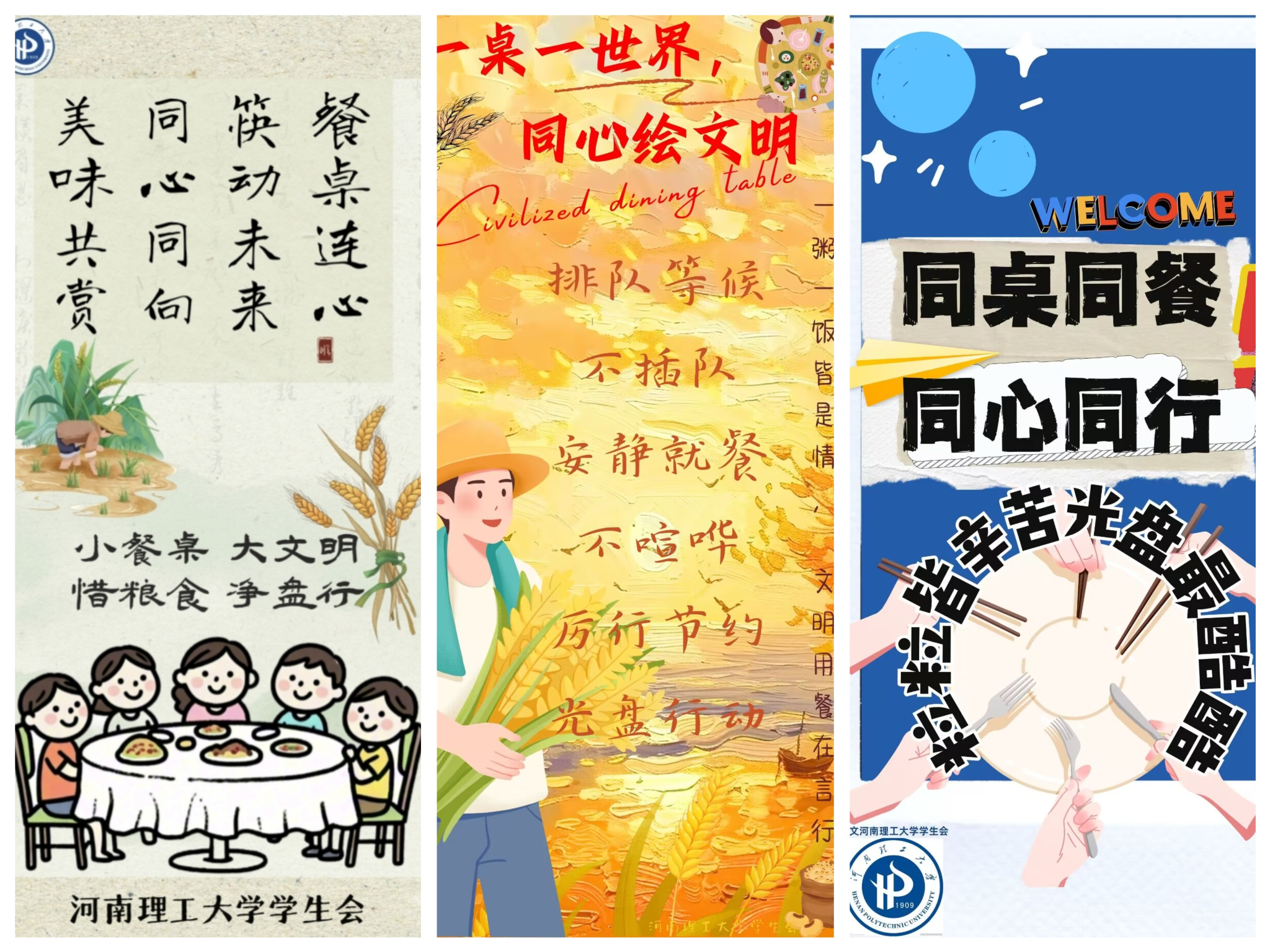 为提升同学们的文明素养,培养勤俭节约和绿色健康的文明行为习惯,弘扬文明用餐的良好风尚,11日17日至11月24日,工商管理学院学生会生活权益部举办了以“同桌用餐,同心同行”为主题的文明餐桌创意海报活动,我院学生积极参加。