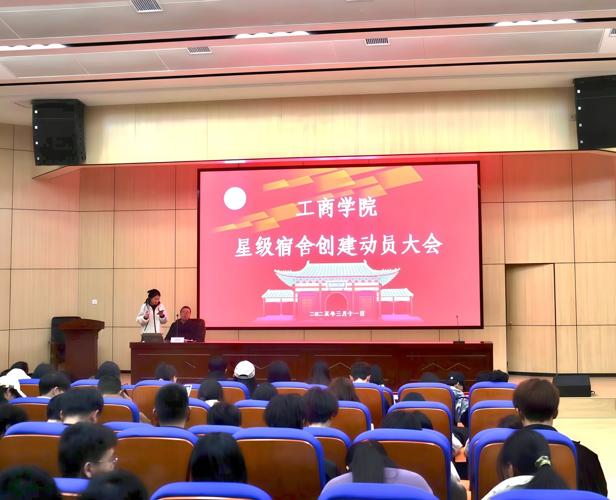 为深入学习贯彻《河南理工大学学生星级宿舍评比办法(试行)》的通知精神,充分发挥宿舍在学生思想政治教育和综合素质教育中的重要阵地作用,优化学院育人环境,塑造“团结向上、安全有序、卫生整洁、文明和谐”的宿舍文化氛围。3月11日下午,工商学院在经管楼尚为报告厅举行了星级宿舍创建动员大会。工商学院党委副书记赵伟利、全体辅导员、全体班长和宿舍长参加会议。会议由学院学工办主任孙玉平主持。