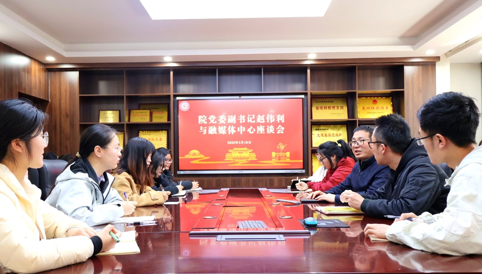 为推动学院宣传工作实现“内容破圈”与“效能跃升”,梳理融媒体中心建设现存问题,明确发展方向,优化工作机制,3月19日下午,我院党委副书记赵伟利与融媒体中心全体成员在学院楼2201会议室进行座谈,会议由学院团委书记卢宏亮主持。
