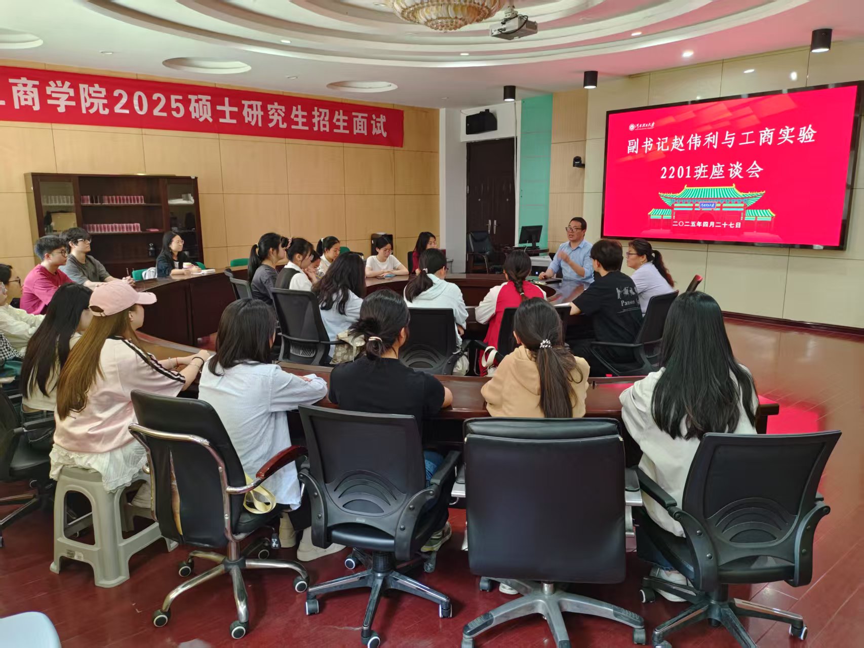 4月27日上午,学院党委副书记赵伟利与工商实验2201班的同学们在院楼MBA案例室1106开展了主题为“考研之路”的座谈会,座谈会由22级辅导员崔冬霞主持。