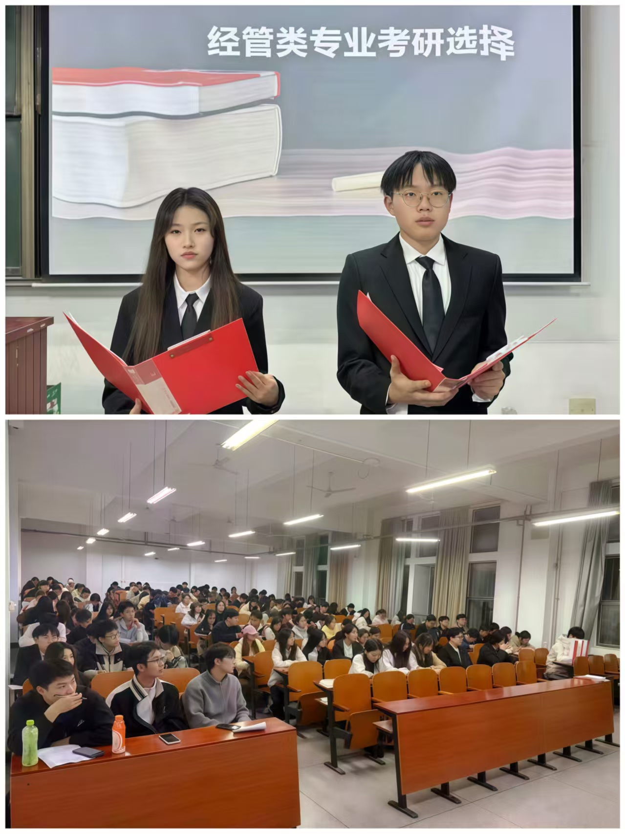 为应对日益激烈的就业竞争,打破考研过程中的信息壁垒,助力我院学子们高效备考,11月20日下午,工商管理学院学生会于经管楼1112教室举办“研途解惑,梦绽硕果”考研讲座。本次讲座特邀专业教师郭石强担任主讲,由艺术团主持朗诵队成员张宇、办公室25级工作者韦森怡担任主持。
